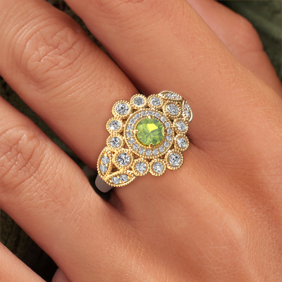 Haben Sie einen Vintage-Fetisch? Dann passt dieser Weißgold Ring perfekt zu Ihnen. Er hat ein zeitgemäßes Design, basierend auf klassischen Designs. Ein leicht romantisches, außergewöhnliches Design! Sogar noch mehr, wenn Sie ihn nach Ihren Wünschen anpassen. Dieser Flower Elia Ring ist mit exquisiten Peridot besetzt. Wie Sie sehen können, können Sie einfach einen Edelstein wählen, der zu Ihrem Stil passt. Jeder Edelstein wird sorgfältig von unseren Händlern ausgewählt, die auf der ganzen Welt verteilt sind. Nichts als die besten Edelsteine für unseren erfahrenen Goldschiede! Schließlich ist es seine Krönung!Unsere Goldschmiede kreieren Ihren individuellen Ring leidenschaftlich, mit größter Sorgfalt und nach Ihren Wünschen. Das Weißgold Ring, wie hier abgebildet, kann mit unserem Online-Tool individuell angepasst werden. Bitte fragen Sie unsere Schmuckdesigner um Hilfe, wenn Sie Änderungen wünsche, die in unserem Online-Tool nicht verfügbar sind. Gerne beantworten wir Ihnen alle offenen Fragen.Da wir unsere eigenen Ringe entwerfen und liefern, können wir Ihnen einen Ring zu einem Preis anbieten, den Sie nirgendwo anders finden. Ein Ring wird auf Bestellung angefertigt, wodurch kein überschüssiges Material anfällt. So können wir Ihnen ein gutes Angebot zum besten Preis machen. Wir verstehen, dass es sich riskant anfühlt, Ihren Ring online zu kaufen. Jedoch helfen wir Ihnen gerne beim Designprozess unter Berücksichtigung Ihres Budgets.Um es einfacher zu machen, bieten wir eine kostenlose 30-tägige Rücksendung.