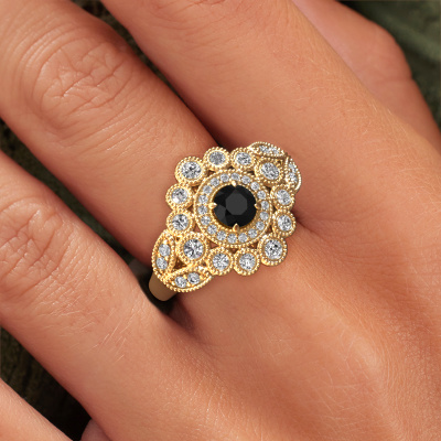 Haben Sie einen Vintage-Fetisch? Dann passt dieser Gold Ring perfekt zu Ihnen. Er hat ein zeitgemäßes Design, basierend auf klassischen Designs. Ein leicht romantisches, außergewöhnliches Design! Sogar noch mehr, wenn Sie ihn nach Ihren Wünschen anpassen. Dieser Flower Elia Ring ist mit exquisiten Schwarze Diamanten besetzt. Wie Sie sehen können, können Sie einfach einen Edelstein wählen, der zu Ihrem Stil passt. Jeder Edelstein wird sorgfältig von unseren Händlern ausgewählt, die auf der ganzen Welt verteilt sind. Nichts als die besten Edelsteine für unseren erfahrenen Goldschiede! Schließlich ist es seine Krönung!Unsere Goldschmiede kreieren Ihren individuellen Ring leidenschaftlich, mit größter Sorgfalt und nach Ihren Wünschen. Das Gold Ring, wie hier abgebildet, kann mit unserem Online-Tool individuell angepasst werden. Bitte fragen Sie unsere Schmuckdesigner um Hilfe, wenn Sie Änderungen wünsche, die in unserem Online-Tool nicht verfügbar sind. Gerne beantworten wir Ihnen alle offenen Fragen.Da wir unsere eigenen Ringe entwerfen und liefern, können wir Ihnen einen Ring zu einem Preis anbieten, den Sie nirgendwo anders finden. Ein Ring wird auf Bestellung angefertigt, wodurch kein überschüssiges Material anfällt. So können wir Ihnen ein gutes Angebot zum besten Preis machen. Wir verstehen, dass es sich riskant anfühlt, Ihren Ring online zu kaufen. Jedoch helfen wir Ihnen gerne beim Designprozess unter Berücksichtigung Ihres Budgets.Um es einfacher zu machen, bieten wir eine kostenlose 30-tägige Rücksendung.