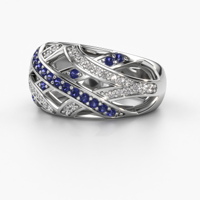 Dieser Ring namens Yinthe besteht aus 14 Karat Weißgold und ist mit Saphir besetzt. Sind Sie auf der Suche nach einem einzigartigen Weißgold Ring mit moderner Note? Dann könnte dieser Ring zu Ihnen passen. Einfach nach Ihren Wünschen anpassen. Er passt zur zeitgenössischen, modernen Frau. Dieser gegenwärtige Ring ist mit wunderschönen Saphir besetzt. Er wurde sorgfältig ausgewählt. Weil Ihr Ring mit nichts als dem atemberaubendsten Edelstein gekrönt werden soll. Unser erfahrener Goldschiede kreiert Ihren Ring in unserem eigenen Studio, wo der Saphir mit großer Sorgfalt gesetzt wird. Der Ring wird dann perfekt poliert, um einen atemberaubenden Ring zu erhalten. Mit unserer modernen Technik können wir Schmuckstücke von höchster Qualität mit größter Sorgfalt für Sie entwerfen und anpassen. Unsere Ringe sind immer um 30 Prozent günstiger als bei anderen Juwelieren. Wir fertigen Ringe auf Bestellung, also müssen wir keine großen Lager unterhalten. Wenn Sie ein bestimmtes Budget haben, beraten wir Sie gerne entsprechend.Unsere talentierten, leidenschaftlichen Designer fügen unserer Online-Kollektion täglich neue Designs hinzu. Zusammen versuchen sie, eine vielfältige Kollektion feinster Schmuckstücke zu erstellen. Wenn Sie es vorziehen, einen Ring nach Ihrem eigenen Entwurf zu machen, können Sie gerne ein Angebot anfordern. Wir machen Ihnen ein großartiges Angebot, basierend auf Qualität und Preis.Um es einfacher zu machen, bieten wir eine kostenlose 30-tägige Rücksendung.