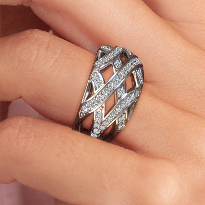 Dieser Ring namens Yinthe besteht aus 14 Karat Weißgold und ist mit Zirkonia besetzt. Sind Sie auf der Suche nach einem einzigartigen Weißgold Ring mit moderner Note? Dann könnte dieser Ring zu Ihnen passen. Einfach nach Ihren Wünschen anpassen. Er passt zur zeitgenössischen, modernen Frau. Dieser gegenwärtige Ring ist mit wunderschönen Zirkonia besetzt. Er wurde sorgfältig ausgewählt. Weil Ihr Ring mit nichts als dem atemberaubendsten Edelstein gekrönt werden soll. Unser erfahrener Goldschiede kreiert Ihren Ring in unserem eigenen Studio, wo der Zirkonia mit großer Sorgfalt gesetzt wird. Der Ring wird dann perfekt poliert, um einen atemberaubenden Ring zu erhalten. Mit unserer modernen Technik können wir Schmuckstücke von höchster Qualität mit größter Sorgfalt für Sie entwerfen und anpassen. Unsere Ringe sind immer um 30 Prozent günstiger als bei anderen Juwelieren. Wir fertigen Ringe auf Bestellung, also müssen wir keine großen Lager unterhalten. Wenn Sie ein bestimmtes Budget haben, beraten wir Sie gerne entsprechend.Unsere talentierten, leidenschaftlichen Designer fügen unserer Online-Kollektion täglich neue Designs hinzu. Zusammen versuchen sie, eine vielfältige Kollektion feinster Schmuckstücke zu erstellen. Wenn Sie es vorziehen, einen Ring nach Ihrem eigenen Entwurf zu machen, können Sie gerne ein Angebot anfordern. Wir machen Ihnen ein großartiges Angebot, basierend auf Qualität und Preis.Um es einfacher zu machen, bieten wir eine kostenlose 30-tägige Rücksendung.