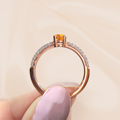 Dieser Ring mit Pavé-Fassung wird Marjan genannt. Dieser Ring aus 14 Karat Roségold ist komplett rund mit Citrin 4.2 mm besetzt. Das Band dieses Roségold Ring ist mit Reihen von Citrin besetzt, die weder Anfang noch Ende zu haben scheinen. Unser Goldschiede wählt die Edelsteine sorgfältig aus und setzt sie mit höchster Präzision. Für maximalen Glanz müssen die Citrin perfekt ausgerichtet sein. Beim kunstvollen Fertigen und Polieren des Schmucks wird der Lichteinfall ständig überwacht, bis der Goldschmiedemeister mit dem Ergebnis zufrieden ist. Von Ihnen entworfen, speziell für Sie gefertigt!Unsere Goldschmiede kreieren Ihren individuellen Ring leidenschaftlich, mit größter Sorgfalt und nach Ihren Wünschen. Das Roségold Ring, wie hier abgebildet, kann mit unserem Online-Tool individuell angepasst werden. Bitte fragen Sie unsere Schmuckdesigner um Hilfe, wenn Sie Änderungen wünsche, die in unserem Online-Tool nicht verfügbar sind. Gerne beantworten wir Ihnen alle offenen Fragen.Nach Erhalt Ihrer Bestellung beginnen unsere Goldschmiede mit Leidenschaft den kreativen Prozess und fertigen Ihren Ring in unserem eigenen Studio. Da wir keine großen Lager haben, werden diese Kosten nicht an Sie weitergegeben. Unsere Preisgestaltung ist der Beweis dafür! Wir bieten Schmuck zum niedrigsten Preis, garantiert.Um es einfacher zu machen, bieten wir eine kostenlose 30-tägige Rücksendung.