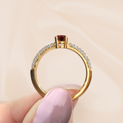 Dieser Ring mit Pavé-Fassung wird Marjan genannt. Dieser Ring aus 14 Karat Gold ist komplett rund mit Granat 4.2 mm besetzt. Das Band dieses Gold Ring ist mit Reihen von Granat besetzt, die weder Anfang noch Ende zu haben scheinen. Unser Goldschiede wählt die Edelsteine sorgfältig aus und setzt sie mit höchster Präzision. Für maximalen Glanz müssen die Granat perfekt ausgerichtet sein. Beim kunstvollen Fertigen und Polieren des Schmucks wird der Lichteinfall ständig überwacht, bis der Goldschmiedemeister mit dem Ergebnis zufrieden ist. Von Ihnen entworfen, speziell für Sie gefertigt!Unsere Goldschmiede kreieren Ihren individuellen Ring leidenschaftlich, mit größter Sorgfalt und nach Ihren Wünschen. Das Gold Ring, wie hier abgebildet, kann mit unserem Online-Tool individuell angepasst werden. Bitte fragen Sie unsere Schmuckdesigner um Hilfe, wenn Sie Änderungen wünsche, die in unserem Online-Tool nicht verfügbar sind. Gerne beantworten wir Ihnen alle offenen Fragen.Nach Erhalt Ihrer Bestellung beginnen unsere Goldschmiede mit Leidenschaft den kreativen Prozess und fertigen Ihren Ring in unserem eigenen Studio. Da wir keine großen Lager haben, werden diese Kosten nicht an Sie weitergegeben. Unsere Preisgestaltung ist der Beweis dafür! Wir bieten Schmuck zum niedrigsten Preis, garantiert.Um es einfacher zu machen, bieten wir eine kostenlose 30-tägige Rücksendung.