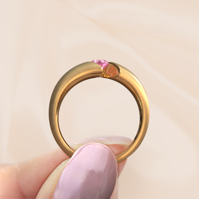Dieser Ring namens Hojalien 1 besteht aus 14 Karat Gold und ist mit Pink Saphir besetzt. Sind Sie auf der Suche nach einem einzigartigen Gold Ring mit moderner Note? Dann könnte dieser Ring zu Ihnen passen. Einfach nach Ihren Wünschen anpassen. Er passt zur zeitgenössischen, modernen Frau. Dieser geschmacksvolle Ring ist mit wunderschönen Pink Saphir besetzt. Er wurde sorgfältig ausgewählt. Weil Ihr Ring mit nichts als dem atemberaubendsten Edelstein gekrönt werden soll. Unser erfahrener Goldschiede kreiert Ihren Ring in unserem eigenen Studio, wo der Pink Saphir mit großer Sorgfalt gesetzt wird. Der Ring wird dann perfekt poliert, um einen atemberaubenden Ring zu erhalten. Mit unserer modernen Technik können wir Schmuckstücke von höchster Qualität mit größter Sorgfalt für Sie entwerfen und anpassen. Unsere Ringe sind immer um 30 Prozent günstiger als bei anderen Juwelieren. Wir fertigen Ringe auf Bestellung, also müssen wir keine großen Lager unterhalten. Wenn Sie ein bestimmtes Budget haben, beraten wir Sie gerne entsprechend.