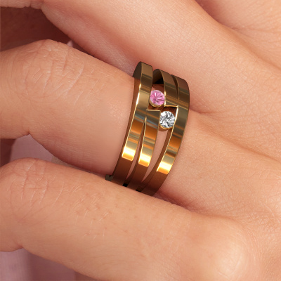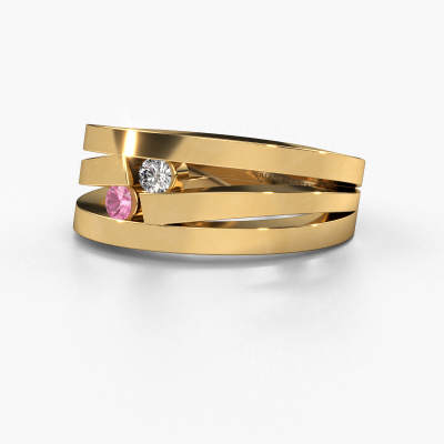 Dieser Ring wird Valerie genannt. Er besteht aus 14 Karat Gold und ist mit 2.7 mm Pink Saphir besetzt. Suchen Sie nach einem einzigartigen Gold Ring mit modernem Aussehen? Dann ist das der perfekte Ring für Sie. Einfach nach Ihren Wünschen anpassen. Perfekt für eine moderne, zeitgenössische Frau! Dieser 2 Stone Ring ist mit atemberaubenden Pink Saphir geschmückt. Er wurde sorgfältig ausgewählt, weil Ihr Ring nur mit den schönsten Edelsteinen gekrönt sein soll. Unser erfahrener Goldschiede kreiert Ihren Ring in unserem eigenen Studio, wo der Pink Saphir mit großer Sorgfalt gesetzt wird. Der Ring wird dann perfekt poliert, um einen schönen Ring zu erhalten. Durch die Kombination modernster Technik mit uralter Handwerkskunst können wir alle Ringe in unserem eigenen Studio anfertigen. Jedes Schmuckstück wird auf Anfrage gefertigt. Das ist vorteilhaft, weil wir Ihnen dadurch einen Preis anbieten können, den Sie nirgendwo anders finden.Unsere Online-Kollektion wird täglich um neue Schmuckdesigns ergänzt. Unser Team von leidenschaftlichen Designern ist bemüht, außergewöhnliche und vielfältige Designs zu kreieren. Haben Sie einen Ring gesehen, der Ihnen gefällt? Setzen Sie sich mit uns in Verbindung. Basierend auf einem guten Preis/Leistungsverhältnis machen wir Ihnen ein Angebot, das Sie nicht ablehnen können!Um es einfacher zu machen, bieten wir eine kostenlose 30-tägige Rücksendung.