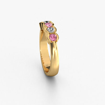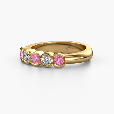 Dieser Ring wird Lotte 5 genannt. Er besteht aus 14 Karat Gold und ist mit 3 mm Pink Saphir besetzt. Suchen Sie nach einem einzigartigen Gold Ring mit modernem Aussehen? Dann ist das der perfekte Ring für Sie. Einfach nach Ihren Wünschen anpassen. Perfekt für eine moderne, zeitgenössische Frau! Dieser 5 Stone Ring ist mit atemberaubenden Pink Saphir geschmückt. Er wurde sorgfältig ausgewählt, weil Ihr Ring nur mit den schönsten Edelsteinen gekrönt sein soll. Unser erfahrener Goldschiede kreiert Ihren Ring in unserem eigenen Studio, wo der Pink Saphir mit großer Sorgfalt gesetzt wird. Der Ring wird dann perfekt poliert, um einen schönen Ring zu erhalten. Durch die Kombination modernster Technik mit uralter Handwerkskunst können wir alle Ringe in unserem eigenen Studio anfertigen. Jedes Schmuckstück wird auf Anfrage gefertigt. Das ist vorteilhaft, weil wir Ihnen dadurch einen Preis anbieten können, den Sie nirgendwo anders finden.Unser Team von talentierten, leidenschaftlichen Designern fügt unserer Online-Kollektion täglich neue Ring-Designs hinzu. Unser Ziel dabei ist es, Ihnen eine große Vielfalt an Schmuckstücken anbieten zu können. Bitte zögern Sie nicht, ein Angebot anzufordern, wenn Sie spezielle Wünsche für Ihren Ring haben. Wir garantieren Ihnen ein Angebot, das Sie nicht ablehnen können.Um es einfacher zu machen, bieten wir eine kostenlose 30-tägige Rücksendung.