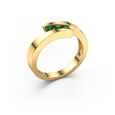 Dieser Ring wird Gracia genannt. Er besteht aus 14 Karat Gold und ist mit 2.7 mm Smaragd besetzt. Suchen Sie nach einem einzigartigen Gold Ring mit modernem Aussehen? Dann ist das der perfekte Ring für Sie. Einfach nach Ihren Wünschen anpassen. Perfekt für eine moderne, zeitgenössische Frau! Dieser geschmacksvolle Ring ist mit atemberaubenden Smaragd geschmückt. Er wurde sorgfältig ausgewählt, weil Ihr Ring nur mit den schönsten Edelsteinen gekrönt sein soll. Unser erfahrener Goldschiede kreiert Ihren Ring in unserem eigenen Studio, wo der Smaragd mit großer Sorgfalt gesetzt wird. Der Ring wird dann perfekt poliert, um einen schönen Ring zu erhalten. Haben Sie ein bestimmtes Budget? Sie können uns gerne kontaktieren, damit wir Ihre Optionen besprechen können. Wir bieten unsere Ringe zum garantiert besten Preis, denn wir fertigen sie auf Bestellung. Solche Preise finden Sie nirgendwo anders!Unsere Online-Kollektion wird täglich um neue Schmuckdesigns ergänzt. Unser Team von leidenschaftlichen Designern ist bemüht, außergewöhnliche und vielfältige Designs zu kreieren. Haben Sie einen Ring gesehen, der Ihnen gefällt? Setzen Sie sich mit uns in Verbindung. Basierend auf einem guten Preis/Leistungsverhältnis machen wir Ihnen ein Angebot, das Sie nicht ablehnen können!Um es einfacher zu machen, bieten wir eine kostenlose 30-tägige Rücksendung.