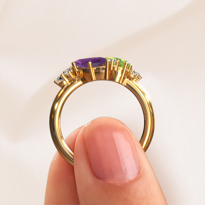 Wie würden Sie Ihren eigenen Stil beschreiben? Suchen Sie nach etwas Einzigartigem? Dieser besondere Gold Ring ist erstaunlich! Einfach nach Ihren eigenen Wünschen anpassen. Dieser Amanda Ring wird mit Amethyst besetzt. Diese Amethysten wurden sorgfältig ausgewählt, denn Ihr Ring darf nur mit dem schönsten Edelstein gekrönt werden. Sehen Sie das auch so? Unser erfahrener Goldschiede kreiert Ihren Ring in unserem eigenen Studio, wo der Amethyst mit Sorgfalt gesetzt wird. Der Ring wird dann perfekt poliert, um ihm extra Glanz zu verleihen. Es ist ein perfekter Ring für eine Frau mit ausgezeichnetem Geschmack!Passen Sie Ihr eigenes, besondere Amanda Ring das dann von unseren Goldschmieden mit großer Leidenschaft angefertigt wird. Bevorzugen Sie eine andere Option, als hier beim Gold Amanda Ring? Dann bieten unsere Online-Tools verschiedene Möglichkeiten. Sie können uns jederzeit gerne um Hilfe fragen, wenn Sie nicht weiterkommen. Gerne beantworten wir Ihnen alle offenen Fragen!Da wir unsere eigenen Ringe entwerfen und liefern, können wir Ihnen einen Ring zu einem Preis anbieten, den Sie nirgendwo anders finden. Ein Ring wird auf Bestellung angefertigt, wodurch kein überschüssiges Material anfällt. So können wir Ihnen ein gutes Angebot zum besten Preis machen. Wir verstehen, dass es sich riskant anfühlt, Ihren Ring online zu kaufen. Jedoch helfen wir Ihnen gerne beim Designprozess unter Berücksichtigung Ihres Budgets.Um es einfacher zu machen, bieten wir eine kostenlose 30-tägige Rücksendung.