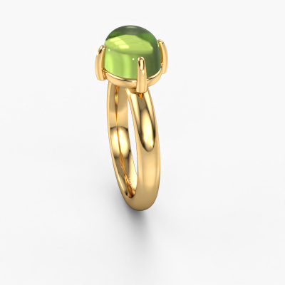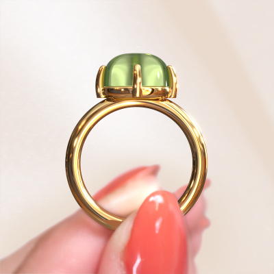 In diesem Foto ist der Gold Melodee Ring mit einem 10x8 mm oval cabochon Peridot besetzt. Cabochon bedeutet, dass ein Peridot zuerst geformt, nicht facettiert wird. Nämlich in eine bestimmte Form wie einen Tropfen, ein Herz oder ein oval cabochon. Anschließend wird er poliert, bis der Edelstein eine Runde Oberfläche hat. Ein Cabochon-Edelstein ist ein atemberaubender, nobler Blickfang, der perfekt zu einem zeitgenössischen wie auch zu einem Vintage-Stil passt. Unsere erfahrenen Goldschmiede formen den charmant Ring bis zur Perfektion und machen ihn einzigartig. Der Cabochon Peridot ist so gefasst, dass seine einzigartigen Qualitäten verstärkt werden. Unsere Goldschmiede kreieren Ihren individuellen Ring leidenschaftlich, mit größter Sorgfalt und nach Ihren Wünschen. Das Gold Ring, wie hier abgebildet, kann mit unserem Online-Tool individuell angepasst werden. Bitte fragen Sie unsere Schmuckdesigner um Hilfe, wenn Sie Änderungen wünsche, die in unserem Online-Tool nicht verfügbar sind. Gerne beantworten wir Ihnen alle offenen Fragen.Nach Erhalt Ihrer Bestellung beginnen unsere Goldschmiede mit Leidenschaft den kreativen Prozess und fertigen Ihren Ring in unserem eigenen Studio. Da wir keine großen Lager haben, werden diese Kosten nicht an Sie weitergegeben. Unsere Preisgestaltung ist der Beweis dafür! Wir bieten Schmuck zum niedrigsten Preis, garantiert.Um es einfacher zu machen, bieten wir eine kostenlose 30-tägige Rücksendung.