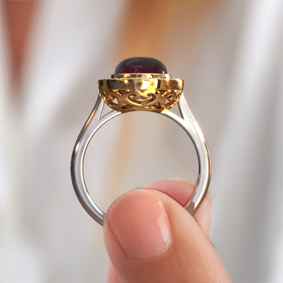 Suchen Sie einen reiche Ring mit einem auffälligen,einzelnen Edelstein? Wie gefällt Ihnen dieser Alisa Ring? Dieser Weißgold Alisa Ring ist mit einem wunderschönen 8 mm rund cabochon Granat besetzt. Der Granat wird von unseren Granat-Lieferanten sorgfältig ausgewählt. Anschließend werden diese Edelsteine nach alter Tradition von unserem Goldschiede gesetzt. Der Ring wird dann zur Perfektion poliert und zu einem einzigartigen Ring mit einem atemberaubenden Granat. Speziell für Sie angefertigt. Ein individueller, Fantasie reiche Ring ist das perfekte Geschenk! Unser Team von leidenschaftlichen Goldschmieden fügt täglich neue exquisite Designs hinzu. Und jedes Design kann angepasst werden. Passen Sie zum Beispiel einfach die Edelmetalle und die Farbe der verwendeten Edelsteine an. Das macht Ihr Design des Fantasie Alisa Ring wirklich einzigartig!Haben Sie ein bestimmtes Budget? Sie können uns gerne kontaktieren, damit wir Ihre Optionen besprechen können. Wir bieten unsere Ringe zum garantiert besten Preis, denn wir fertigen sie auf Bestellung. Solche Preise finden Sie nirgendwo anders!Um es einfacher zu machen, bieten wir eine kostenlose 30-tägige Rücksendung.