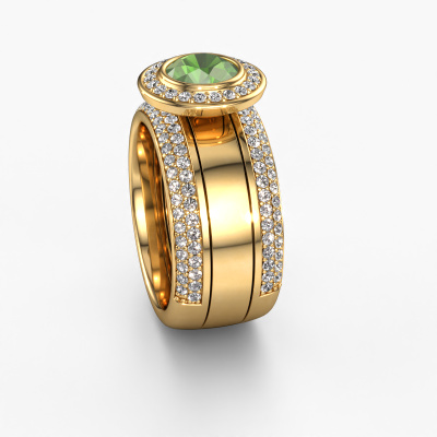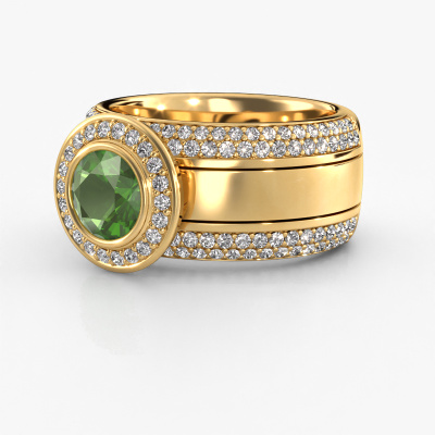 Aufgrund seiner detaillierten Verarbeitung hat dieser Breiter Ring mit Turmalin grün eine stilvolle Erscheinung. Ein Pavé Fassung Ring, der perfekt zu einer modernen Frau passt. Dieser Gold Ring, unser Roxie, ist ein echter Hingucker! Sobald wir