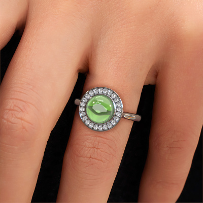 Suchen Sie einen reiche Ring mit einem auffälligen,einzelnen Edelstein? Wie gefällt Ihnen dieser Alisa Ring? Dieser Platin Alisa Ring ist mit einem wunderschönen 8 mm rund cabochon Turmalin grün besetzt. Der Turmalin grün wird von unseren grüner Turmalin-Lieferanten sorgfältig ausgewählt. Anschließend werden diese Edelsteine nach alter Tradition von unserem Goldschiede gesetzt. Der Ring wird dann zur Perfektion poliert und zu einem einzigartigen Ring mit einem atemberaubenden Turmalin grün. Speziell für Sie angefertigt. Ein individueller, Fantasie reiche Ring ist das perfekte Geschenk! Unser Team von leidenschaftlichen Goldschmieden fügt täglich neue exquisite Designs hinzu. Und jedes Design kann angepasst werden. Passen Sie zum Beispiel einfach die Edelmetalle und die Farbe der verwendeten Edelsteine an. Das macht Ihr Design des Fantasie Alisa Ring wirklich einzigartig!Haben Sie ein bestimmtes Budget? Sie können uns gerne kontaktieren, damit wir Ihre Optionen besprechen können. Wir bieten unsere Ringe zum garantiert besten Preis, denn wir fertigen sie auf Bestellung. Solche Preise finden Sie nirgendwo anders!Um es einfacher zu machen, bieten wir eine kostenlose 30-tägige Rücksendung.