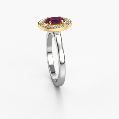 Der oben gezeigte Ring wird Madelon 1 genannt. Diese Art von Ring wird als Halo Ring bezeichnet. Der 14 Karat Weißgold Ring ist mit einem 7x5 mm oval Rhodolit als Mittelstein besetzt, umgeben von kleineren Diamanten. Dieser günstige Weißgold Halo Ring ist mit einem großen Rhodolit besetzt, umschlossen von kleineren Edelsteinen. Der Ring erhielt seinen Namen wegen seinem Lichthof, den die kleineren Diamanten helfen zu schaffen. Um einen umwerfenden Lichthof zu erhalten, müssen diese kleineren Edelsteine perfekt ausgerichtet sein, damit das Licht aus jedem Blickwinkel gleichmäßig auf den Rhodolit reflektiert wird. Und unsere erfahrenen Goldschmiede erledigen diese Arbeit. Jedes sorgfältig ausgewählte Rhodolit wird von Hand und mit höchster Präzision gesetzt. Während der Herstellung wird der Lichteinfall ständig überwacht, um sicherzustellen, dass der günstige Halo-Effekt noch sichtbar ist. Am Ende erhalten Sie einen einzigartigen Ring mit einem strahlenden Rhodolit Edelstein-Herzstück. Ein wahrlich exquisiter Ring!Sobald Sie Ihren Madelon 1 Ring mit unserem Online-Tool fertiggestellt haben, beginnen unsere Goldschmiede mit der kreativen Anfertigung Ihres Ringes. Dieser wird mit Leidenschaft und Sorgfalt nach alter Handwerkskunst gefertigt. Darüber arbeiten wir mit ehrlichen Edelsteinen. Einfach online mit unserem Online-Tool anpassen, wenn Sie Änderungen wünschen. Wenn Sie spezielle Änderungen an Ihrem Madelon 1 Weißgold Ring vornehmen möchten, die in unserem Online-Tool nicht verfügbar sind, wenden Sie sich bitte an unsere Experten.Haben Sie ein bestimmtes Budget? Sie können uns gerne kontaktieren, damit wir Ihre Optionen besprechen können. Wir bieten unsere Ringe zum garantiert besten Preis, denn wir fertigen sie auf Bestellung. Solche Preise finden Sie nirgendwo anders!Um es einfacher zu machen, bieten wir eine kostenlose 30-tägige Rücksendung.
