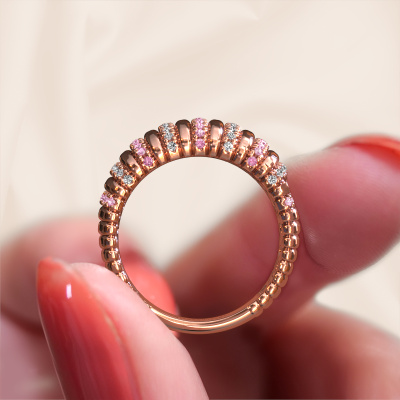 Wie würden Sie Ihren eigenen Stil beschreiben? Suchen Sie nach etwas Einzigartigem? Dieser günstige Roségold Ring ist erstaunlich! Einfach nach Ihren eigenen Wünschen anpassen. Dieser Dawn 10mm Ring wird mit Pink Saphir besetzt. Diese Pink Saphir wurden sorgfältig ausgewählt, denn Ihr Ring darf nur mit dem schönsten Edelstein gekrönt werden. Sehen Sie das auch so? Unser erfahrener Goldschiede kreiert Ihren Ring in unserem eigenen Studio, wo der Pink Saphir mit Sorgfalt gesetzt wird. Der Ring wird dann perfekt poliert, um ihm extra Glanz zu verleihen. Es ist ein perfekter Ring für eine Frau mit ausgezeichnetem Geschmack!Unsere Goldschmiede kreieren Ihren individuellen Ring leidenschaftlich, mit größter Sorgfalt und nach Ihren Wünschen. Das Roségold Ring, wie hier abgebildet, kann mit unserem Online-Tool individuell angepasst werden. Bitte fragen Sie unsere Schmuckdesigner um Hilfe, wenn Sie Änderungen wünsche, die in unserem Online-Tool nicht verfügbar sind. Gerne beantworten wir Ihnen alle offenen Fragen.Da wir unsere eigenen Ringe entwerfen und liefern, können wir Ihnen einen Ring zu einem Preis anbieten, den Sie nirgendwo anders finden. Ein Ring wird auf Bestellung angefertigt, wodurch kein überschüssiges Material anfällt. So können wir Ihnen ein gutes Angebot zum besten Preis machen. Wir verstehen, dass es sich riskant anfühlt, Ihren Ring online zu kaufen. Jedoch helfen wir Ihnen gerne beim Designprozess unter Berücksichtigung Ihres Budgets.Um es einfacher zu machen, bieten wir eine kostenlose 30-tägige Rücksendung.