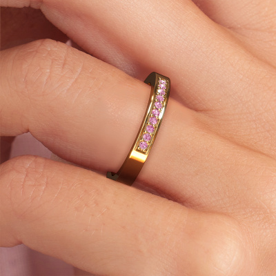 Dieser Loes 3 Vorsteckring in 14 Karat Gold ist mit Pink Saphir besetzt. Dieser Gold Loes 3 Ring ist die perfekte Ergänzung zu Ihrer Ring-Kollektion! Wie der Name schon sagt, ist es ein Ring, der an einem Finger mit einem anderen Ring kombiniert werden kann. Das gibt Ihnen die Möglichkeit, Ihren eigenen Stil zu schaffen. Ein Vorsteckring repräsentiert normalerweise eine bestimmte Erinnerung an jemand Besonderen, oder an einen denkwürdigen Moment. Es ist üblich, einen Vorsteckring, welcher ein Jubiläum darstellt, mit einem Trauring zu kombinieren. Aber dieser halb Eternity Ring, kombiniert mit Ihren anderen Ringen, ist auch ein klassisches Modeobjekt. Sobald Sie Ihren Loes 3 Vorsteckring mit unserem Online-Tool fertiggestellt haben, beginnen unsere Goldschmiede mit der kreativen Anfertigung Ihres Ringes. Dieser wird mit Leidenschaft und Sorgfalt nach alter Handwerkskunst gefertigt. Darüber arbeiten wir mit ehrlichen Edelsteinen. Einfach online mit unserem Online-Tool anpassen, wenn Sie Änderungen wünschen. Wenn Sie spezielle Änderungen an Ihrem Loes 3 Gold Vorsteckring vornehmen möchten, die in unserem Online-Tool nicht verfügbar sind, wenden Sie sich bitte an unsere Experten.Nachdem Sie Ihre Bestellung aufgegeben haben, beginnen unsere Goldschmiede mit dem kreativen Prozess der Herstellung Ihres Loes 3 Ring. Wir haben keine Lager. Das ist vorteilhaft, da diese Kosten nicht an Sie weitergegeben werden. Daher sind wir in der Lage, Schmuck zu außergewöhnlich niedrigen Preisen anzubieten.Um es einfacher zu machen, bieten wir eine kostenlose 30-tägige Rücksendung.