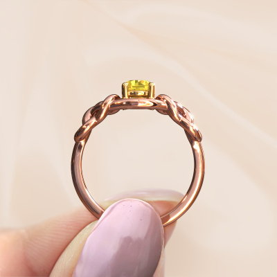 Dieser symbolische, Roségold Zoe Ring wird mit Gelb Saphir besetzt. Für einige ist ein Ring nicht mehr als ein schönes Modeartikel, aber sie können auch ein bedeutungsvolles Andenken werden. Ein solcher Ring kann täglich getragen werden und passt zu vielen verschiedenen Stilen. Entwerfen Sie Ihren eigenen einzigartigen Ring, machen Sie ihn noch spezieller. Sie werden jedes Mal an seine Einzigartigkeit erinnert, wenn Sie ihn ansehen. Vielleicht erinnert er Sie an jemand besonderen. Er könnte Erinnerungen wecken. Unvergessliche Momente, festgehalten in einem Ring. Das Schöne daran ist, dass die verwendeten Edelmetalle und Edelsteine ein Leben lang halten. Ein Leben voller Erinnerungen verdient nichts weniger!Sobald Sie Ihren Zoe Ring mit unserem Online-Tool fertiggestellt haben, beginnen unsere Goldschmiede mit der kreativen Anfertigung Ihres Ringes. Dieser wird mit Leidenschaft und Sorgfalt nach alter Handwerkskunst gefertigt. Darüber arbeiten wir mit ehrlichen Edelsteinen. Einfach online mit unserem Online-Tool anpassen, wenn Sie Änderungen wünschen. Wenn Sie spezielle Änderungen an Ihrem Zoe Roségold Ring vornehmen möchten, die in unserem Online-Tool nicht verfügbar sind, wenden Sie sich bitte an unsere Experten.Mit unserer modernen Technik können wir Schmuckstücke von höchster Qualität mit größter Sorgfalt für Sie entwerfen und anpassen. Unsere Ringe sind immer um 30 Prozent günstiger als bei anderen Juwelieren. Wir fertigen Ringe auf Bestellung, also müssen wir keine großen Lager unterhalten. Wenn Sie ein bestimmtes Budget haben, beraten wir Sie gerne entsprechend.Um es einfacher zu machen, bieten wir eine kostenlose 30-tägige Rücksendung.