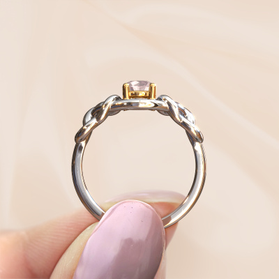 Dieser symbolische, Weißgold Zoe Ring wird mit Morganit Champagner besetzt. Für einige ist ein Ring nicht mehr als ein schönes Modeartikel, aber sie können auch ein bedeutungsvolles Andenken werden. Ein solcher Ring kann täglich getragen werden und passt zu vielen verschiedenen Stilen. Entwerfen Sie Ihren eigenen einzigartigen Ring, machen Sie ihn noch spezieller. Sie werden jedes Mal an seine Einzigartigkeit erinnert, wenn Sie ihn ansehen. Vielleicht erinnert er Sie an jemand besonderen. Er könnte Erinnerungen wecken. Unvergessliche Momente, festgehalten in einem Ring. Das Schöne daran ist, dass die verwendeten Edelmetalle und Edelsteine ein Leben lang halten. Ein Leben voller Erinnerungen verdient nichts weniger!Sobald Sie Ihren Zoe Ring mit unserem Online-Tool fertiggestellt haben, beginnen unsere Goldschmiede mit der kreativen Anfertigung Ihres Ringes. Dieser wird mit Leidenschaft und Sorgfalt nach alter Handwerkskunst gefertigt. Darüber arbeiten wir mit ehrlichen Edelsteinen. Einfach online mit unserem Online-Tool anpassen, wenn Sie Änderungen wünschen. Wenn Sie spezielle Änderungen an Ihrem Zoe Weißgold Ring vornehmen möchten, die in unserem Online-Tool nicht verfügbar sind, wenden Sie sich bitte an unsere Experten.Mit unserer modernen Technik können wir Schmuckstücke von höchster Qualität mit größter Sorgfalt für Sie entwerfen und anpassen. Unsere Ringe sind immer um 30 Prozent günstiger als bei anderen Juwelieren. Wir fertigen Ringe auf Bestellung, also müssen wir keine großen Lager unterhalten. Wenn Sie ein bestimmtes Budget haben, beraten wir Sie gerne entsprechend.Um es einfacher zu machen, bieten wir eine kostenlose 30-tägige Rücksendung.