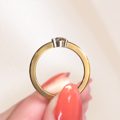 Dieser 1 Stone Ring wird Yasmin 1 genannt. Diese Art von Ring wird als Memoire ring bezeichnet, da seine Edelsteine in einer durchgehenden Linie angeordnet sind. Dadurch kann er einfach mit anderen Ringen kombiniert werden. Das Band dieses 14 Karat Gold Ring ist mit einer Braun Diamant besetzt. Sie können ganz einfach online die Kombination auswählen, die Sie bevorzugen. Wie Sie sehen, wird bei diesem Gold Memoire Ring ein einziger Braun Diamant gesetzt. Der Memoire Ring steht für Zusammenwirken. Und genau das tun diese Edelsteine, zusammenwirken. Zusammen geben sie dem Band eines klassische Ring einen schönen Effekt! So ein bedeutungsvoller Ring, finden Sie nicht auch? Alle von uns ausgesuchten Braune Diamanten werden von unserem erfahrenen Goldschiede in Handarbeit eingefasst. Das ist eine präzise Aufgabe, die nur durch die Kombination von purer Handwerkskunst und dem Einsatz neuester Techniken erfolgreich durchgeführt werden kann, um eine optimale Wirkung zu erzielen. Um eine perfekte Lichtreflexion zu erzeugen, müssen alle Edelsteine auf die gleiche Weise perfekt ausgerichtet sein. Während der Fertigung wird der Goldschmiedemeister daher ständig die Lichtreflexion überwachen, um zu gewährleisten, dass die Braun Diamant perfekt ausgerichtet sind. Das erfordert eine geschickte Hand und viel Geduld, aber dann wird das Endprodukt zu einem echten Kunstwerk. Und genau das ist unsere Mission!Da wir unsere eigenen Ringe entwerfen und liefern, können wir Ihnen einen Ring zu einem Preis anbieten, den Sie nirgendwo anders finden. Ein Ring wird auf Bestellung angefertigt, wodurch kein überschüssiges Material anfällt. So können wir Ihnen ein gutes Angebot zum besten Preis machen. Wir verstehen, dass es sich riskant anfühlt, Ihren Ring online zu kaufen. Jedoch helfen wir Ihnen gerne beim Designprozess unter Berücksichtigung Ihres Budgets.Unser Team von talentierten, leidenschaftlichen Designern fügt unserer Online-Kollektion täglich neue Ringe-Designs hinzu. Unser Ziel dabei ist es, Ihnen eine große Vielfalt an Schmuckstücken anbieten zu können. Bitte zögern Sie nicht, ein Angebot anzufordern, wenn Sie spezielle Wünsche für Ihren Ring haben. Wir garantieren Ihnen ein Angebot, das Sie nicht ablehnen können.Um es einfacher zu machen, bieten wir eine kostenlose 30-tägige Rücksendung.