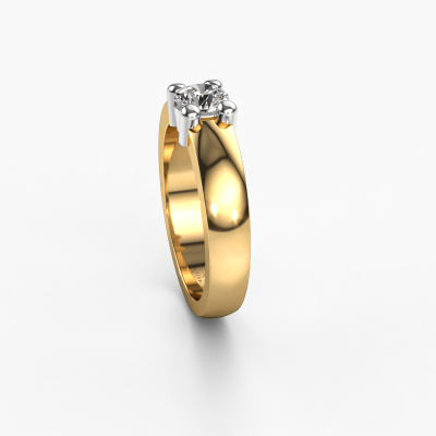 Dieser 1 Stone Ring wird Yasmin 1 genannt. Diese Art von Ring wird als Memoire ring bezeichnet, da seine Edelsteine in einer durchgehenden Linie angeordnet sind. Dadurch kann er einfach mit anderen Ringen kombiniert werden. Das Band dieses 14 Karat Gold Ring ist mit einer Diamant besetzt. Sie können ganz einfach online die Kombination auswählen, die Sie bevorzugen. Wie Sie sehen, wird bei diesem Gold Memoire Ring ein einziger Diamant gesetzt. Der Memoire Ring steht für Zusammenwirken. Und genau das tun diese Edelsteine, zusammenwirken. Zusammen geben sie dem Band eines klassische Ring einen schönen Effekt! So ein bedeutungsvoller Ring, finden Sie nicht auch? Alle von uns ausgesuchten Diamanten werden von unserem erfahrenen Goldschiede in Handarbeit eingefasst. Das ist eine präzise Aufgabe, die nur durch die Kombination von purer Handwerkskunst und dem Einsatz neuester Techniken erfolgreich durchgeführt werden kann, um eine optimale Wirkung zu erzielen. Um eine perfekte Lichtreflexion zu erzeugen, müssen alle Edelsteine auf die gleiche Weise perfekt ausgerichtet sein. Während der Fertigung wird der Goldschmiedemeister daher ständig die Lichtreflexion überwachen, um zu gewährleisten, dass die Diamant perfekt ausgerichtet sind. Das erfordert eine geschickte Hand und viel Geduld, aber dann wird das Endprodukt zu einem echten Kunstwerk. Und genau das ist unsere Mission!Da wir unsere eigenen Ringe entwerfen und liefern, können wir Ihnen einen Ring zu einem Preis anbieten, den Sie nirgendwo anders finden. Ein Ring wird auf Bestellung angefertigt, wodurch kein überschüssiges Material anfällt. So können wir Ihnen ein gutes Angebot zum besten Preis machen. Wir verstehen, dass es sich riskant anfühlt, Ihren Ring online zu kaufen. Jedoch helfen wir Ihnen gerne beim Designprozess unter Berücksichtigung Ihres Budgets.Unser Team von talentierten, leidenschaftlichen Designern fügt unserer Online-Kollektion täglich neue Ringe-Designs hinzu. Unser Ziel dabei ist es, Ihnen eine große Vielfalt an Schmuckstücken anbieten zu können. Bitte zögern Sie nicht, ein Angebot anzufordern, wenn Sie spezielle Wünsche für Ihren Ring haben. Wir garantieren Ihnen ein Angebot, das Sie nicht ablehnen können.Um es einfacher zu machen, bieten wir eine kostenlose 30-tägige Rücksendung.