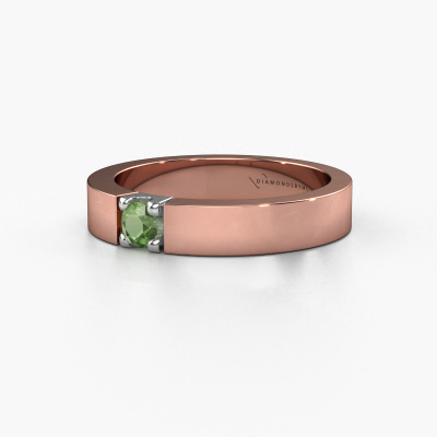 Dieser 1 Stone Ring wird Dana 1 genannt. Diese Art von Ring wird als Memoire ring bezeichnet, da seine Edelsteine in einer durchgehenden Linie angeordnet sind. Dadurch kann er einfach mit anderen Ringen kombiniert werden. Das Band dieses 14 Karat Roségold Ring ist mit einer Turmalin grün besetzt. Sie können ganz einfach online die Kombination auswählen, die Sie bevorzugen. Wie Sie sehen, wird bei diesem Roségold Memoire Ring ein einziger Turmalin grün gesetzt. Der Memoire Ring steht für Zusammenwirken. Und genau das tun diese Edelsteine, zusammenwirken. Zusammen geben sie dem Band eines moderne Ring einen schönen Effekt! So ein bedeutungsvoller Ring, finden Sie nicht auch? Alle von uns ausgesuchten grüner Turmalin werden von unserem erfahrenen Goldschiede in Handarbeit eingefasst. Das ist eine präzise Aufgabe, die nur durch die Kombination von purer Handwerkskunst und dem Einsatz neuester Techniken erfolgreich durchgeführt werden kann, um eine optimale Wirkung zu erzielen. Um eine perfekte Lichtreflexion zu erzeugen, müssen alle Edelsteine auf die gleiche Weise perfekt ausgerichtet sein. Während der Fertigung wird der Goldschmiedemeister daher ständig die Lichtreflexion überwachen, um zu gewährleisten, dass die Turmalin grün perfekt ausgerichtet sind. Das erfordert eine geschickte Hand und viel Geduld, aber dann wird das Endprodukt zu einem echten Kunstwerk. Und genau das ist unsere Mission!Nach Erhalt Ihrer Bestellung beginnen unsere Goldschmiede mit Leidenschaft den kreativen Prozess und fertigen Ihren Ring in unserem eigenen Studio. Da wir keine großen Lager haben, werden diese Kosten nicht an Sie weitergegeben. Unsere Preisgestaltung ist der Beweis dafür! Wir bieten Schmuck zum niedrigsten Preis, garantiert.Unser Team von talentierten, leidenschaftlichen Designern fügt unserer Online-Kollektion täglich neue Ringe-Designs hinzu. Unser Ziel dabei ist es, Ihnen eine große Vielfalt an Schmuckstücken anbieten zu können. Bitte zögern Sie nicht, ein Angebot anzufordern, wenn Sie spezielle Wünsche für Ihren Ring haben. Wir garantieren Ihnen ein Angebot, das Sie nicht ablehnen können.Um es einfacher zu machen, bieten wir eine kostenlose 30-tägige Rücksendung.