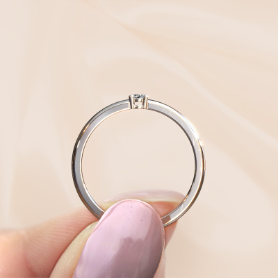 Dieser 1 Stone Ring wird Michelle 1 genannt. Diese Art von Ring wird als Memoire ring bezeichnet, da seine Edelsteine in einer durchgehenden Linie angeordnet sind. Dadurch kann er einfach mit anderen Ringen kombiniert werden. Das Band dieses 14 Karat Weißgold Ring ist mit einer Diamant besetzt. Sie können ganz einfach online die Kombination auswählen, die Sie bevorzugen. Wie Sie sehen, wird bei diesem Weißgold Memoire Ring ein einziger Diamant gesetzt. Der Memoire Ring steht für Zusammenwirken. Und genau das tun diese Edelsteine, zusammenwirken. Zusammen geben sie dem Band eines klassische Ring einen schönen Effekt! So ein bedeutungsvoller Ring, finden Sie nicht auch? Alle von uns ausgesuchten Diamanten werden von unserem erfahrenen Goldschiede in Handarbeit eingefasst. Das ist eine präzise Aufgabe, die nur durch die Kombination von purer Handwerkskunst und dem Einsatz neuester Techniken erfolgreich durchgeführt werden kann, um eine optimale Wirkung zu erzielen. Um eine perfekte Lichtreflexion zu erzeugen, müssen alle Edelsteine auf die gleiche Weise perfekt ausgerichtet sein. Während der Fertigung wird der Goldschmiedemeister daher ständig die Lichtreflexion überwachen, um zu gewährleisten, dass die Diamant perfekt ausgerichtet sind. Das erfordert eine geschickte Hand und viel Geduld, aber dann wird das Endprodukt zu einem echten Kunstwerk. Und genau das ist unsere Mission!Durch die Kombination modernster Technik mit uralter Handwerkskunst können wir alle Ringe in unserem eigenen Studio anfertigen. Jedes Schmuckstück wird auf Anfrage gefertigt. Das ist vorteilhaft, weil wir Ihnen dadurch einen Preis anbieten können, den Sie nirgendwo anders finden.