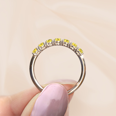 Wie würden Sie Ihren eigenen Stil beschreiben? Suchen Sie nach etwas Einzigartigem? Dieser Memoire Platin Ring ist erstaunlich! Einfach nach Ihren eigenen Wünschen anpassen. Dieser Vivienne Half Ring wird mit Gelb Saphir besetzt. Diese Gelb Saphir wurden sorgfältig ausgewählt, denn Ihr Ring darf nur mit dem schönsten Edelstein gekrönt werden. Sehen Sie das auch so? Unser erfahrener Goldschiede kreiert Ihren Ring in unserem eigenen Studio, wo der Gelb Saphir mit Sorgfalt gesetzt wird. Der Ring wird dann perfekt poliert, um ihm extra Glanz zu verleihen. Es ist ein perfekter Ring für eine Frau mit ausgezeichnetem Geschmack!Sobald Sie Ihren Vivienne Half Ring mit unserem Online-Tool fertiggestellt haben, beginnen unsere Goldschmiede mit der kreativen Anfertigung Ihres Ringes. Dieser wird mit Leidenschaft und Sorgfalt nach alter Handwerkskunst gefertigt. Darüber hinaus sind unsere Edelsteine ehrlich gewonnen. Wenn Sie spezielle Änderungen an Ihrem Vivienne Half Ring vornehmen möchten, die in unserem Online-Tool nicht verfügbar sind, wenden Sie sich bitte an unsere Experten.Mit unserer modernen Technik können wir Schmuckstücke von höchster Qualität mit größter Sorgfalt für Sie entwerfen und anpassen. Unsere Ringe sind immer um 30 Prozent günstiger als bei anderen Juwelieren. Wir fertigen Ringe auf Bestellung, also müssen wir keine großen Lager unterhalten. Wenn Sie ein bestimmtes Budget haben, beraten wir Sie gerne entsprechend.Um es einfacher zu machen, bieten wir eine kostenlose 30-tägige Rücksendung.