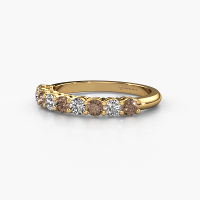 Dieser 9 Stone Ring wird Michelle 9 genannt. Diese Art von Ring wird als Memoire ring bezeichnet, da seine Edelsteine in einer durchgehenden Linie angeordnet sind. Dadurch kann er einfach mit anderen Ringen kombiniert werden. Das Band dieses 14 Karat Gold Ring ist in einer Kombination aus Braun Diamant und Lab-grown Diamant besetzt. Sie können ganz einfach online die Kombination auswählen, die Sie bevorzugen. Wie Sie sehen, wird bei diesem Gold Memoire Ring mehre Braune Diamanten gesetzt. Der Memoire ring steht für Zusammenwirken. Und genau das tun diese Edelsteine, zusammenwirken. Zusammen geben sie dem Band eines klassische Ring einen schönen Effekt! So ein bedeutungsvoller Ring, finden Sie nicht auch? Alle von uns ausgesuchten Braune Diamanten werden von unserem erfahrenen Goldschiede in Handarbeit eingefasst. Das ist eine präzise Aufgabe, die nur durch die Kombination von purer Handwerkskunst und dem Einsatz neuester Techniken erfolgreich durchgeführt werden kann, um eine optimale Wirkung zu erzielen. Um eine perfekte Lichtreflexion zu erzeugen, müssen alle Edelsteine auf die gleiche Weise perfekt ausgerichtet sein. Während der Fertigung wird der Goldschmied Meister daher ständig die Lichtreflexion überwachen, um zu gewährleisten, dass die Braune Diamanten perfekt ausgerichtet sind. Das erfordert eine geschickte Hand und viel Geduld, aber dann wird das Endprodukt zu einem echten Kunstwerk. Und genau das ist unsere Mission!Da wir unsere eigenen Ringe entwerfen und liefern, können wir Ihnen einen Ring zu einem Preis anbieten, den Sie nirgendwo anders finden. Ein Ring wird auf Bestellung angefertigt, wodurch kein überschüssiges Material anfällt. So können wir Ihnen ein gutes Angebot zum besten Preis machen. Wir verstehen, dass es sich riskant anfühlt, Ihren Ring online zu kaufen. Jedoch helfen wir Ihnen gerne beim Designprozess unter Berücksichtigung Ihres Budgets.Unser Team von talentierten, leidenschaftlichen Designern fügt unserer Online-Kollektion täglich neue Ringe-Designs hinzu. Unser Ziel dabei ist es, Ihnen eine große Vielfalt an Schmuckstücken anbieten zu können. Bitte zögern Sie nicht, ein Angebot anzufordern, wenn Sie spezielle Wünsche für Ihren Ring haben. Wir garantieren Ihnen ein Angebot, das Sie nicht ablehnen können.Um es einfacher zu machen, bieten wir eine kostenlose 30-tägige Rücksendung.