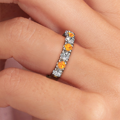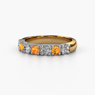 Dieser 7 Stone Ring wird Rianne 7 genannt. Diese Art von Ring wird als Memoire ring bezeichnet, da seine Edelsteine in einer durchgehenden Linie angeordnet sind. Dadurch kann er einfach mit anderen Ringen kombiniert werden. Das Band dieses 14 Karat Gold Ring ist in einer Kombination aus Citrin und Lab-grown Diamant besetzt. Sie können ganz einfach online die Kombination auswählen, die Sie bevorzugen. Wie Sie sehen, wird bei diesem Gold Memoire Ring mehre Citrin gesetzt. Der Memoire ring steht für Zusammenwirken. Und genau das tun diese Edelsteine, zusammenwirken. Zusammen geben sie dem Band eines traditionell Ring einen schönen Effekt! So ein bedeutungsvoller Ring, finden Sie nicht auch? Alle von uns ausgesuchten Citrin werden von unserem erfahrenen Goldschiede in Handarbeit eingefasst. Das ist eine präzise Aufgabe, die nur durch die Kombination von purer Handwerkskunst und dem Einsatz neuester Techniken erfolgreich durchgeführt werden kann, um eine optimale Wirkung zu erzielen. Um eine perfekte Lichtreflexion zu erzeugen, müssen alle Edelsteine auf die gleiche Weise perfekt ausgerichtet sein. Während der Fertigung wird der Goldschmied Meister daher ständig die Lichtreflexion überwachen, um zu gewährleisten, dass die Citrin perfekt ausgerichtet sind. Das erfordert eine geschickte Hand und viel Geduld, aber dann wird das Endprodukt zu einem echten Kunstwerk. Und genau das ist unsere Mission!Da wir unsere eigenen Ringe entwerfen und liefern, können wir Ihnen einen Ring zu einem Preis anbieten, den Sie nirgendwo anders finden. Ein Ring wird auf Bestellung angefertigt, wodurch kein überschüssiges Material anfällt. So können wir Ihnen ein gutes Angebot zum besten Preis machen. Wir verstehen, dass es sich riskant anfühlt, Ihren Ring online zu kaufen. Jedoch helfen wir Ihnen gerne beim Designprozess unter Berücksichtigung Ihres Budgets.