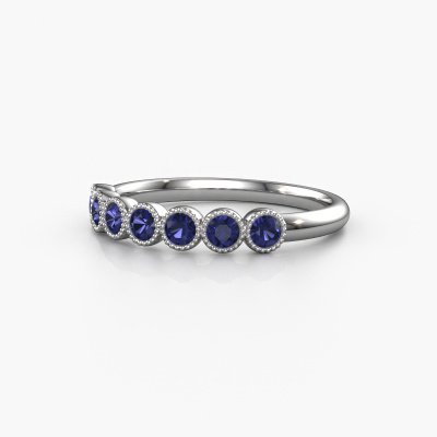Dieser Memoire Ring wird Mariam half genannt. Diese Art von Ring wird als Memoire ring bezeichnet, da seine Edelsteine in einer durchgehenden Linie angeordnet sind. Dadurch kann er einfach mit anderen Ringen kombiniert werden. Das Band dieses 14 Karat Weißgold Ring ist mit einer Saphir besetzt. Sie können ganz einfach online die Kombination auswählen, die Sie bevorzugen. Wie Sie sehen, wird bei diesem Weißgold Memoire Ring ein einziger Saphir gesetzt. Der Memoire Ring steht für Zusammenwirken. Und genau das tun diese Edelsteine, zusammenwirken. Zusammen geben sie dem Band eines Fantasie Ring einen schönen Effekt! So ein bedeutungsvoller Ring, finden Sie nicht auch? Alle von uns ausgesuchten Saphir werden von unserem erfahrenen Goldschiede in Handarbeit eingefasst. Das ist eine präzise Aufgabe, die nur durch die Kombination von purer Handwerkskunst und dem Einsatz neuester Techniken erfolgreich durchgeführt werden kann, um eine optimale Wirkung zu erzielen. Um eine perfekte Lichtreflexion zu erzeugen, müssen alle Edelsteine auf die gleiche Weise perfekt ausgerichtet sein. Während der Fertigung wird der Goldschmiedemeister daher ständig die Lichtreflexion überwachen, um zu gewährleisten, dass die Saphir perfekt ausgerichtet sind. Das erfordert eine geschickte Hand und viel Geduld, aber dann wird das Endprodukt zu einem echten Kunstwerk. Und genau das ist unsere Mission!Haben Sie ein bestimmtes Budget? Sie können uns gerne kontaktieren, damit wir Ihre Optionen besprechen können. Wir bieten unsere Ringe zum garantiert besten Preis, denn wir fertigen sie auf Bestellung. Solche Preise finden Sie nirgendwo anders!
