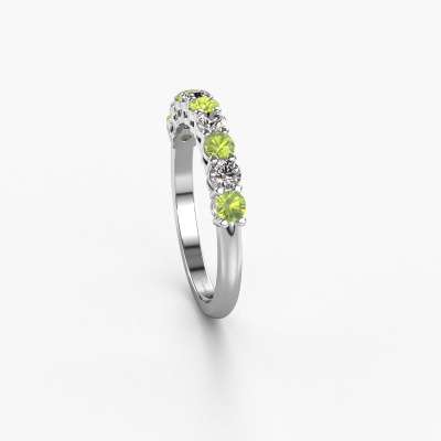 Dieser 9 Stone Ring wird Michelle 9 genannt. Diese Art von Ring wird als Memoire ring bezeichnet, da seine Edelsteine in einer durchgehenden Linie angeordnet sind. Dadurch kann er einfach mit anderen Ringen kombiniert werden. Das Band dieses Platin Ring ist in einer Kombination aus Peridot und Lab-grown Diamant besetzt. Sie können ganz einfach online die Kombination auswählen, die Sie bevorzugen. Wie Sie sehen, wird bei diesem Platin Memoire Ring mehre Peridot gesetzt. Der Memoire ring steht für Zusammenwirken. Und genau das tun diese Edelsteine, zusammenwirken. Zusammen geben sie dem Band eines klassische Ring einen schönen Effekt! So ein bedeutungsvoller Ring, finden Sie nicht auch? Alle von uns ausgesuchten Peridot werden von unserem erfahrenen Goldschiede in Handarbeit eingefasst. Das ist eine präzise Aufgabe, die nur durch die Kombination von purer Handwerkskunst und dem Einsatz neuester Techniken erfolgreich durchgeführt werden kann, um eine optimale Wirkung zu erzielen. Um eine perfekte Lichtreflexion zu erzeugen, müssen alle Edelsteine auf die gleiche Weise perfekt ausgerichtet sein. Während der Fertigung wird der Goldschmied Meister daher ständig die Lichtreflexion überwachen, um zu gewährleisten, dass die Peridot perfekt ausgerichtet sind. Das erfordert eine geschickte Hand und viel Geduld, aber dann wird das Endprodukt zu einem echten Kunstwerk. Und genau das ist unsere Mission!Da wir unsere eigenen Ringe entwerfen und liefern, können wir Ihnen einen Ring zu einem Preis anbieten, den Sie nirgendwo anders finden. Ein Ring wird auf Bestellung angefertigt, wodurch kein überschüssiges Material anfällt. So können wir Ihnen ein gutes Angebot zum besten Preis machen. Wir verstehen, dass es sich riskant anfühlt, Ihren Ring online zu kaufen. Jedoch helfen wir Ihnen gerne beim Designprozess unter Berücksichtigung Ihres Budgets.Unser Team von talentierten, leidenschaftlichen Designern fügt unserer Online-Kollektion täglich neue Ringe-Designs hinzu. Unser Ziel dabei ist es, Ihnen eine große Vielfalt an Schmuckstücken anbieten zu können. Bitte zögern Sie nicht, ein Angebot anzufordern, wenn Sie spezielle Wünsche für Ihren Ring haben. Wir garantieren Ihnen ein Angebot, das Sie nicht ablehnen können.Um es einfacher zu machen, bieten wir eine kostenlose 30-tägige Rücksendung.