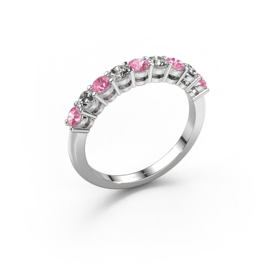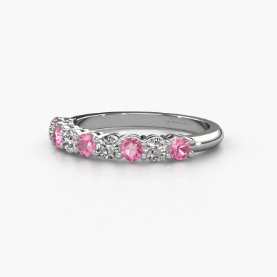 Dieser 9 Stone Ring wird Michelle 9 genannt. Diese Art von Ring wird als Memoire ring bezeichnet, da seine Edelsteine in einer durchgehenden Linie angeordnet sind. Dadurch kann er einfach mit anderen Ringen kombiniert werden. Das Band dieses Platin Ring ist in einer Kombination aus Pink Saphir und Lab-grown Diamant besetzt. Sie können ganz einfach online die Kombination auswählen, die Sie bevorzugen. Wie Sie sehen, wird bei diesem Platin Memoire Ring mehre Pink Saphir gesetzt. Der Memoire ring steht für Zusammenwirken. Und genau das tun diese Edelsteine, zusammenwirken. Zusammen geben sie dem Band eines klassische Ring einen schönen Effekt! So ein bedeutungsvoller Ring, finden Sie nicht auch? Alle von uns ausgesuchten Pink Saphir werden von unserem erfahrenen Goldschiede in Handarbeit eingefasst. Das ist eine präzise Aufgabe, die nur durch die Kombination von purer Handwerkskunst und dem Einsatz neuester Techniken erfolgreich durchgeführt werden kann, um eine optimale Wirkung zu erzielen. Um eine perfekte Lichtreflexion zu erzeugen, müssen alle Edelsteine auf die gleiche Weise perfekt ausgerichtet sein. Während der Fertigung wird der Goldschmied Meister daher ständig die Lichtreflexion überwachen, um zu gewährleisten, dass die Pink Saphir perfekt ausgerichtet sind. Das erfordert eine geschickte Hand und viel Geduld, aber dann wird das Endprodukt zu einem echten Kunstwerk. Und genau das ist unsere Mission!Da wir unsere eigenen Ringe entwerfen und liefern, können wir Ihnen einen Ring zu einem Preis anbieten, den Sie nirgendwo anders finden. Ein Ring wird auf Bestellung angefertigt, wodurch kein überschüssiges Material anfällt. So können wir Ihnen ein gutes Angebot zum besten Preis machen. Wir verstehen, dass es sich riskant anfühlt, Ihren Ring online zu kaufen. Jedoch helfen wir Ihnen gerne beim Designprozess unter Berücksichtigung Ihres Budgets.Unser Team von talentierten, leidenschaftlichen Designern fügt unserer Online-Kollektion täglich neue Ringe-Designs hinzu. Unser Ziel dabei ist es, Ihnen eine große Vielfalt an Schmuckstücken anbieten zu können. Bitte zögern Sie nicht, ein Angebot anzufordern, wenn Sie spezielle Wünsche für Ihren Ring haben. Wir garantieren Ihnen ein Angebot, das Sie nicht ablehnen können.Um es einfacher zu machen, bieten wir eine kostenlose 30-tägige Rücksendung.