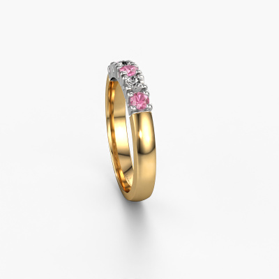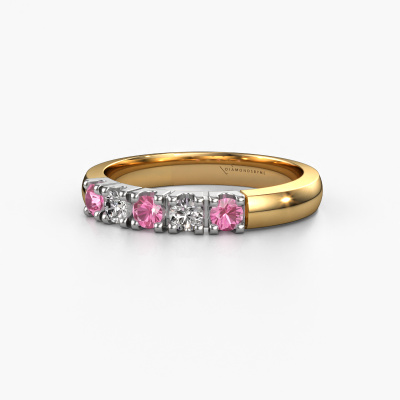 Dieser Memoire Ring wird Rianne 5 genannt. Diese Art von Ring wird als Memoire ring bezeichnet, da seine Edelsteine in einer durchgehenden Linie angeordnet sind. Dadurch kann er einfach mit anderen Ringen kombiniert werden. Das Band dieses 14 Karat Gold Ring ist in einer Kombination aus Pink Saphir und Diamant besetzt. Sie können ganz einfach online die Kombination auswählen, die Sie bevorzugen. Wie Sie sehen, wird bei diesem Gold Memoire Ring mehre Pink Saphir gesetzt. Der Memoire ring steht für Zusammenwirken. Und genau das tun diese Edelsteine, zusammenwirken. Zusammen geben sie dem Band eines klassische Ring einen schönen Effekt! So ein bedeutungsvoller Ring, finden Sie nicht auch? Alle von uns ausgesuchten Pink Saphir werden von unserem erfahrenen Goldschiede in Handarbeit eingefasst. Das ist eine präzise Aufgabe, die nur durch die Kombination von purer Handwerkskunst und dem Einsatz neuester Techniken erfolgreich durchgeführt werden kann, um eine optimale Wirkung zu erzielen. Um eine perfekte Lichtreflexion zu erzeugen, müssen alle Edelsteine auf die gleiche Weise perfekt ausgerichtet sein. Während der Fertigung wird der Goldschmied Meister daher ständig die Lichtreflexion überwachen, um zu gewährleisten, dass die Pink Saphir perfekt ausgerichtet sind. Das erfordert eine geschickte Hand und viel Geduld, aber dann wird das Endprodukt zu einem echten Kunstwerk. Und genau das ist unsere Mission!Durch die Kombination modernster Technik mit uralter Handwerkskunst können wir alle Ringe in unserem eigenen Studio anfertigen. Jedes Schmuckstück wird auf Anfrage gefertigt. Das ist vorteilhaft, weil wir Ihnen dadurch einen Preis anbieten können, den Sie nirgendwo anders finden.