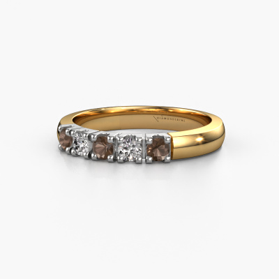 Dieser Memoire Ring wird Rianne 5 genannt. Diese Art von Ring wird als Memoire ring bezeichnet, da seine Edelsteine in einer durchgehenden Linie angeordnet sind. Dadurch kann er einfach mit anderen Ringen kombiniert werden. Das Band dieses 14 Karat Gold Ring ist in einer Kombination aus Rauchquarz und Diamant besetzt. Sie können ganz einfach online die Kombination auswählen, die Sie bevorzugen. Wie Sie sehen, wird bei diesem Gold Memoire Ring mehre Rauchquarz gesetzt. Der Memoire ring steht für Zusammenwirken. Und genau das tun diese Edelsteine, zusammenwirken. Zusammen geben sie dem Band eines klassische Ring einen schönen Effekt! So ein bedeutungsvoller Ring, finden Sie nicht auch? Alle von uns ausgesuchten Rauchquarz werden von unserem erfahrenen Goldschiede in Handarbeit eingefasst. Das ist eine präzise Aufgabe, die nur durch die Kombination von purer Handwerkskunst und dem Einsatz neuester Techniken erfolgreich durchgeführt werden kann, um eine optimale Wirkung zu erzielen. Um eine perfekte Lichtreflexion zu erzeugen, müssen alle Edelsteine auf die gleiche Weise perfekt ausgerichtet sein. Während der Fertigung wird der Goldschmied Meister daher ständig die Lichtreflexion überwachen, um zu gewährleisten, dass die Rauchquarz perfekt ausgerichtet sind. Das erfordert eine geschickte Hand und viel Geduld, aber dann wird das Endprodukt zu einem echten Kunstwerk. Und genau das ist unsere Mission!Durch die Kombination modernster Technik mit uralter Handwerkskunst können wir alle Ringe in unserem eigenen Studio anfertigen. Jedes Schmuckstück wird auf Anfrage gefertigt. Das ist vorteilhaft, weil wir Ihnen dadurch einen Preis anbieten können, den Sie nirgendwo anders finden.