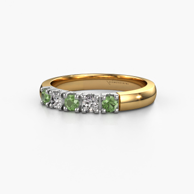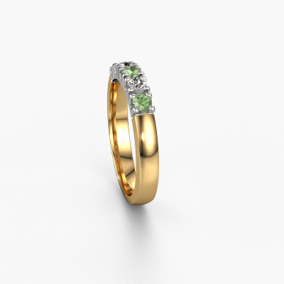 Dieser Memoire Ring wird Rianne 5 genannt. Diese Art von Ring wird als Memoire ring bezeichnet, da seine Edelsteine in einer durchgehenden Linie angeordnet sind. Dadurch kann er einfach mit anderen Ringen kombiniert werden. Das Band dieses 14 Karat Gold Ring ist in einer Kombination aus Turmalin grün und Diamant besetzt. Sie können ganz einfach online die Kombination auswählen, die Sie bevorzugen. Wie Sie sehen, wird bei diesem Gold Memoire Ring mehre grüner Turmalin gesetzt. Der Memoire ring steht für Zusammenwirken. Und genau das tun diese Edelsteine, zusammenwirken. Zusammen geben sie dem Band eines klassische Ring einen schönen Effekt! So ein bedeutungsvoller Ring, finden Sie nicht auch? Alle von uns ausgesuchten grüner Turmalin werden von unserem erfahrenen Goldschiede in Handarbeit eingefasst. Das ist eine präzise Aufgabe, die nur durch die Kombination von purer Handwerkskunst und dem Einsatz neuester Techniken erfolgreich durchgeführt werden kann, um eine optimale Wirkung zu erzielen. Um eine perfekte Lichtreflexion zu erzeugen, müssen alle Edelsteine auf die gleiche Weise perfekt ausgerichtet sein. Während der Fertigung wird der Goldschmied Meister daher ständig die Lichtreflexion überwachen, um zu gewährleisten, dass die grüner Turmalin perfekt ausgerichtet sind. Das erfordert eine geschickte Hand und viel Geduld, aber dann wird das Endprodukt zu einem echten Kunstwerk. Und genau das ist unsere Mission!Durch die Kombination modernster Technik mit uralter Handwerkskunst können wir alle Ringe in unserem eigenen Studio anfertigen. Jedes Schmuckstück wird auf Anfrage gefertigt. Das ist vorteilhaft, weil wir Ihnen dadurch einen Preis anbieten können, den Sie nirgendwo anders finden.