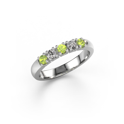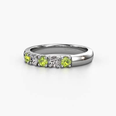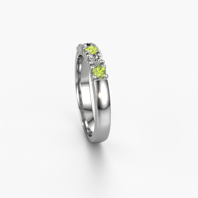 Dieser Memoire Ring wird Rianne 5 genannt. Diese Art von Ring wird als Memoire ring bezeichnet, da seine Edelsteine in einer durchgehenden Linie angeordnet sind. Dadurch kann er einfach mit anderen Ringen kombiniert werden. Das Band dieses Platin Ring ist in einer Kombination aus Peridot und Diamant besetzt. Sie können ganz einfach online die Kombination auswählen, die Sie bevorzugen. Wie Sie sehen, wird bei diesem Platin Memoire Ring mehre Peridot gesetzt. Der Memoire ring steht für Zusammenwirken. Und genau das tun diese Edelsteine, zusammenwirken. Zusammen geben sie dem Band eines klassische Ring einen schönen Effekt! So ein bedeutungsvoller Ring, finden Sie nicht auch? Alle von uns ausgesuchten Peridot werden von unserem erfahrenen Goldschiede in Handarbeit eingefasst. Das ist eine präzise Aufgabe, die nur durch die Kombination von purer Handwerkskunst und dem Einsatz neuester Techniken erfolgreich durchgeführt werden kann, um eine optimale Wirkung zu erzielen. Um eine perfekte Lichtreflexion zu erzeugen, müssen alle Edelsteine auf die gleiche Weise perfekt ausgerichtet sein. Während der Fertigung wird der Goldschmied Meister daher ständig die Lichtreflexion überwachen, um zu gewährleisten, dass die Peridot perfekt ausgerichtet sind. Das erfordert eine geschickte Hand und viel Geduld, aber dann wird das Endprodukt zu einem echten Kunstwerk. Und genau das ist unsere Mission!Durch die Kombination modernster Technik mit uralter Handwerkskunst können wir alle Ringe in unserem eigenen Studio anfertigen. Jedes Schmuckstück wird auf Anfrage gefertigt. Das ist vorteilhaft, weil wir Ihnen dadurch einen Preis anbieten können, den Sie nirgendwo anders finden.
