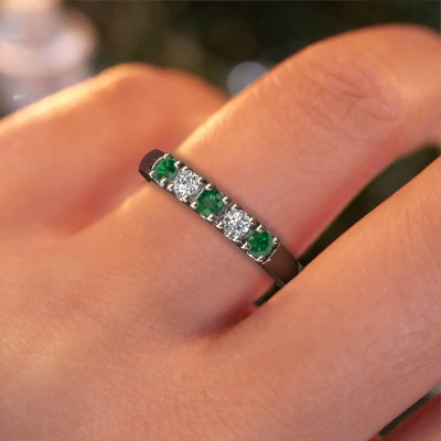 Dieser Memoire Ring wird Rianne 5 genannt. Diese Art von Ring wird als Memoire ring bezeichnet, da seine Edelsteine in einer durchgehenden Linie angeordnet sind. Dadurch kann er einfach mit anderen Ringen kombiniert werden. Das Band dieses Platin Ring ist in einer Kombination aus Smaragd und Diamant besetzt. Sie können ganz einfach online die Kombination auswählen, die Sie bevorzugen. Wie Sie sehen, wird bei diesem Platin Memoire Ring mehre Smaragd gesetzt. Der Memoire ring steht für Zusammenwirken. Und genau das tun diese Edelsteine, zusammenwirken. Zusammen geben sie dem Band eines klassische Ring einen schönen Effekt! So ein bedeutungsvoller Ring, finden Sie nicht auch? Alle von uns ausgesuchten Smaragd werden von unserem erfahrenen Goldschiede in Handarbeit eingefasst. Das ist eine präzise Aufgabe, die nur durch die Kombination von purer Handwerkskunst und dem Einsatz neuester Techniken erfolgreich durchgeführt werden kann, um eine optimale Wirkung zu erzielen. Um eine perfekte Lichtreflexion zu erzeugen, müssen alle Edelsteine auf die gleiche Weise perfekt ausgerichtet sein. Während der Fertigung wird der Goldschmied Meister daher ständig die Lichtreflexion überwachen, um zu gewährleisten, dass die Smaragd perfekt ausgerichtet sind. Das erfordert eine geschickte Hand und viel Geduld, aber dann wird das Endprodukt zu einem echten Kunstwerk. Und genau das ist unsere Mission!Durch die Kombination modernster Technik mit uralter Handwerkskunst können wir alle Ringe in unserem eigenen Studio anfertigen. Jedes Schmuckstück wird auf Anfrage gefertigt. Das ist vorteilhaft, weil wir Ihnen dadurch einen Preis anbieten können, den Sie nirgendwo anders finden.