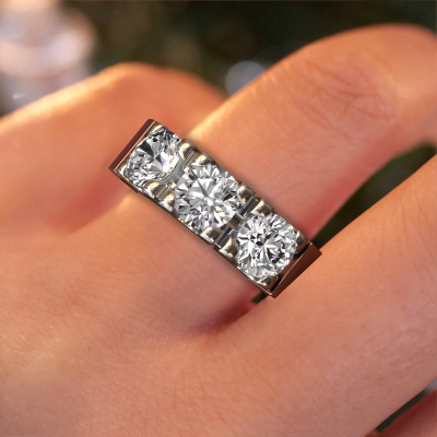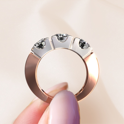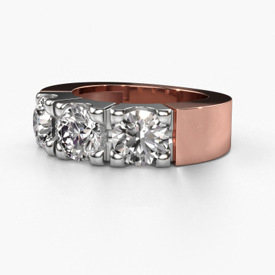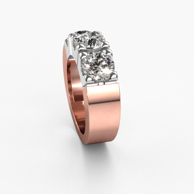 Dieser 3 Stone Ring wird Dana 3 genannt. Diese Art von Ring wird als Memoire ring bezeichnet, da seine Edelsteine in einer durchgehenden Linie angeordnet sind. Dadurch kann er einfach mit anderen Ringen kombiniert werden. Das Band dieses 14 Karat Roségold Ring ist in einer Kombination aus Diamant und Lab-grown Diamant besetzt. Sie können ganz einfach online die Kombination auswählen, die Sie bevorzugen. Wie Sie sehen, wird bei diesem Roségold Memoire Ring mehre Diamanten gesetzt. Der Memoire ring steht für Zusammenwirken. Und genau das tun diese Edelsteine, zusammenwirken. Zusammen geben sie dem Band eines moderne Ring einen schönen Effekt! So ein bedeutungsvoller Ring, finden Sie nicht auch? Alle von uns ausgesuchten Diamanten werden von unserem erfahrenen Goldschiede in Handarbeit eingefasst. Das ist eine präzise Aufgabe, die nur durch die Kombination von purer Handwerkskunst und dem Einsatz neuester Techniken erfolgreich durchgeführt werden kann, um eine optimale Wirkung zu erzielen. Um eine perfekte Lichtreflexion zu erzeugen, müssen alle Edelsteine auf die gleiche Weise perfekt ausgerichtet sein. Während der Fertigung wird der Goldschmied Meister daher ständig die Lichtreflexion überwachen, um zu gewährleisten, dass die Diamanten perfekt ausgerichtet sind. Das erfordert eine geschickte Hand und viel Geduld, aber dann wird das Endprodukt zu einem echten Kunstwerk. Und genau das ist unsere Mission!Nach Erhalt Ihrer Bestellung beginnen unsere Goldschmiede mit Leidenschaft den kreativen Prozess und fertigen Ihren Ring in unserem eigenen Studio. Da wir keine großen Lager haben, werden diese Kosten nicht an Sie weitergegeben. Unsere Preisgestaltung ist der Beweis dafür! Wir bieten Schmuck zum niedrigsten Preis, garantiert.Unsere talentierten, leidenschaftlichen Designer fügen unserer Online-Kollektion täglich neue Designs hinzu. Zusammen versuchen sie, eine vielfältige Kollektion feinster Schmuckstücke zu erstellen. Wenn Sie es vorziehen, einen Ring nach Ihrem eigenen Entwurf zu machen, können Sie gerne ein Angebot anfordern. Wir machen Ihnen ein großartiges Angebot, basierend auf Qualität und Preis.Um es einfacher zu machen, bieten wir eine kostenlose 30-tägige Rücksendung.
