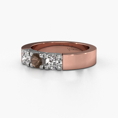 Dieser 3 Stone Ring wird Dana 3 genannt. Diese Art von Ring wird als Memoire ring bezeichnet, da seine Edelsteine in einer durchgehenden Linie angeordnet sind. Dadurch kann er einfach mit anderen Ringen kombiniert werden. Das Band dieses 14 Karat Roségold Ring ist in einer Kombination aus Rauchquarz und Lab-grown Diamant besetzt. Sie können ganz einfach online die Kombination auswählen, die Sie bevorzugen. Wie Sie sehen, wird bei diesem Roségold Memoire Ring mehre Rauchquarz gesetzt. Der Memoire ring steht für Zusammenwirken. Und genau das tun diese Edelsteine, zusammenwirken. Zusammen geben sie dem Band eines moderne Ring einen schönen Effekt! So ein bedeutungsvoller Ring, finden Sie nicht auch? Alle von uns ausgesuchten Rauchquarz werden von unserem erfahrenen Goldschiede in Handarbeit eingefasst. Das ist eine präzise Aufgabe, die nur durch die Kombination von purer Handwerkskunst und dem Einsatz neuester Techniken erfolgreich durchgeführt werden kann, um eine optimale Wirkung zu erzielen. Um eine perfekte Lichtreflexion zu erzeugen, müssen alle Edelsteine auf die gleiche Weise perfekt ausgerichtet sein. Während der Fertigung wird der Goldschmied Meister daher ständig die Lichtreflexion überwachen, um zu gewährleisten, dass die Rauchquarz perfekt ausgerichtet sind. Das erfordert eine geschickte Hand und viel Geduld, aber dann wird das Endprodukt zu einem echten Kunstwerk. Und genau das ist unsere Mission!Nach Erhalt Ihrer Bestellung beginnen unsere Goldschmiede mit Leidenschaft den kreativen Prozess und fertigen Ihren Ring in unserem eigenen Studio. Da wir keine großen Lager haben, werden diese Kosten nicht an Sie weitergegeben. Unsere Preisgestaltung ist der Beweis dafür! Wir bieten Schmuck zum niedrigsten Preis, garantiert.Unsere talentierten, leidenschaftlichen Designer fügen unserer Online-Kollektion täglich neue Designs hinzu. Zusammen versuchen sie, eine vielfältige Kollektion feinster Schmuckstücke zu erstellen. Wenn Sie es vorziehen, einen Ring nach Ihrem eigenen Entwurf zu machen, können Sie gerne ein Angebot anfordern. Wir machen Ihnen ein großartiges Angebot, basierend auf Qualität und Preis.Um es einfacher zu machen, bieten wir eine kostenlose 30-tägige Rücksendung.