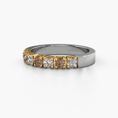 Dieser 7 Stone Ring wird Dana 7 genannt. Diese Art von Ring wird als Memoire ring bezeichnet, da seine Edelsteine in einer durchgehenden Linie angeordnet sind. Dadurch kann er einfach mit anderen Ringen kombiniert werden. Das Band dieses 14 Karat Weißgold Ring ist in einer Kombination aus Braun Diamant und Lab-grown Diamant besetzt. Sie können ganz einfach online die Kombination auswählen, die Sie bevorzugen. Wie Sie sehen, wird bei diesem Weißgold Memoire Ring mehre Braune Diamanten gesetzt. Der Memoire ring steht für Zusammenwirken. Und genau das tun diese Edelsteine, zusammenwirken. Zusammen geben sie dem Band eines moderne Ring einen schönen Effekt! So ein bedeutungsvoller Ring, finden Sie nicht auch? Alle von uns ausgesuchten Braune Diamanten werden von unserem erfahrenen Goldschiede in Handarbeit eingefasst. Das ist eine präzise Aufgabe, die nur durch die Kombination von purer Handwerkskunst und dem Einsatz neuester Techniken erfolgreich durchgeführt werden kann, um eine optimale Wirkung zu erzielen. Um eine perfekte Lichtreflexion zu erzeugen, müssen alle Edelsteine auf die gleiche Weise perfekt ausgerichtet sein. Während der Fertigung wird der Goldschmied Meister daher ständig die Lichtreflexion überwachen, um zu gewährleisten, dass die Braune Diamanten perfekt ausgerichtet sind. Das erfordert eine geschickte Hand und viel Geduld, aber dann wird das Endprodukt zu einem echten Kunstwerk. Und genau das ist unsere Mission!Nach Erhalt Ihrer Bestellung beginnen unsere Goldschmiede mit Leidenschaft den kreativen Prozess und fertigen Ihren Ring in unserem eigenen Studio. Da wir keine großen Lager haben, werden diese Kosten nicht an Sie weitergegeben. Unsere Preisgestaltung ist der Beweis dafür! Wir bieten Schmuck zum niedrigsten Preis, garantiert.Unser Team von talentierten, leidenschaftlichen Designern fügt unserer Online-Kollektion täglich neue Ringe-Designs hinzu. Unser Ziel dabei ist es, Ihnen eine große Vielfalt an Schmuckstücken anbieten zu können. Bitte zögern Sie nicht, ein Angebot anzufordern, wenn Sie spezielle Wünsche für Ihren Ring haben. Wir garantieren Ihnen ein Angebot, das Sie nicht ablehnen können.Um es einfacher zu machen, bieten wir eine kostenlose 30-tägige Rücksendung.