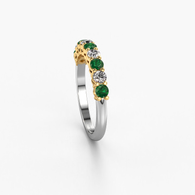 Dieser 9 Stone Ring wird Michelle 9 genannt. Diese Art von Ring wird als Memoire ring bezeichnet, da seine Edelsteine in einer durchgehenden Linie angeordnet sind. Dadurch kann er einfach mit anderen Ringen kombiniert werden. Das Band dieses 14 Karat Weißgold Ring ist in einer Kombination aus Smaragd und Lab-grown Diamant besetzt. Sie können ganz einfach online die Kombination auswählen, die Sie bevorzugen. Wie Sie sehen, wird bei diesem Weißgold Memoire Ring mehre Smaragd gesetzt. Der Memoire ring steht für Zusammenwirken. Und genau das tun diese Edelsteine, zusammenwirken. Zusammen geben sie dem Band eines klassische Ring einen schönen Effekt! So ein bedeutungsvoller Ring, finden Sie nicht auch? Alle von uns ausgesuchten Smaragd werden von unserem erfahrenen Goldschiede in Handarbeit eingefasst. Das ist eine präzise Aufgabe, die nur durch die Kombination von purer Handwerkskunst und dem Einsatz neuester Techniken erfolgreich durchgeführt werden kann, um eine optimale Wirkung zu erzielen. Um eine perfekte Lichtreflexion zu erzeugen, müssen alle Edelsteine auf die gleiche Weise perfekt ausgerichtet sein. Während der Fertigung wird der Goldschmied Meister daher ständig die Lichtreflexion überwachen, um zu gewährleisten, dass die Smaragd perfekt ausgerichtet sind. Das erfordert eine geschickte Hand und viel Geduld, aber dann wird das Endprodukt zu einem echten Kunstwerk. Und genau das ist unsere Mission!Da wir unsere eigenen Ringe entwerfen und liefern, können wir Ihnen einen Ring zu einem Preis anbieten, den Sie nirgendwo anders finden. Ein Ring wird auf Bestellung angefertigt, wodurch kein überschüssiges Material anfällt. So können wir Ihnen ein gutes Angebot zum besten Preis machen. Wir verstehen, dass es sich riskant anfühlt, Ihren Ring online zu kaufen. Jedoch helfen wir Ihnen gerne beim Designprozess unter Berücksichtigung Ihres Budgets.Unser Team von talentierten, leidenschaftlichen Designern fügt unserer Online-Kollektion täglich neue Ringe-Designs hinzu. Unser Ziel dabei ist es, Ihnen eine große Vielfalt an Schmuckstücken anbieten zu können. Bitte zögern Sie nicht, ein Angebot anzufordern, wenn Sie spezielle Wünsche für Ihren Ring haben. Wir garantieren Ihnen ein Angebot, das Sie nicht ablehnen können.Um es einfacher zu machen, bieten wir eine kostenlose 30-tägige Rücksendung.