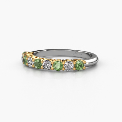 Dieser 9 Stone Ring wird Michelle 9 genannt. Diese Art von Ring wird als Memoire ring bezeichnet, da seine Edelsteine in einer durchgehenden Linie angeordnet sind. Dadurch kann er einfach mit anderen Ringen kombiniert werden. Das Band dieses 14 Karat Weißgold Ring ist in einer Kombination aus Turmalin grün und Lab-grown Diamant besetzt. Sie können ganz einfach online die Kombination auswählen, die Sie bevorzugen. Wie Sie sehen, wird bei diesem Weißgold Memoire Ring mehre grüner Turmalin gesetzt. Der Memoire ring steht für Zusammenwirken. Und genau das tun diese Edelsteine, zusammenwirken. Zusammen geben sie dem Band eines klassische Ring einen schönen Effekt! So ein bedeutungsvoller Ring, finden Sie nicht auch? Alle von uns ausgesuchten grüner Turmalin werden von unserem erfahrenen Goldschiede in Handarbeit eingefasst. Das ist eine präzise Aufgabe, die nur durch die Kombination von purer Handwerkskunst und dem Einsatz neuester Techniken erfolgreich durchgeführt werden kann, um eine optimale Wirkung zu erzielen. Um eine perfekte Lichtreflexion zu erzeugen, müssen alle Edelsteine auf die gleiche Weise perfekt ausgerichtet sein. Während der Fertigung wird der Goldschmied Meister daher ständig die Lichtreflexion überwachen, um zu gewährleisten, dass die grüner Turmalin perfekt ausgerichtet sind. Das erfordert eine geschickte Hand und viel Geduld, aber dann wird das Endprodukt zu einem echten Kunstwerk. Und genau das ist unsere Mission!Da wir unsere eigenen Ringe entwerfen und liefern, können wir Ihnen einen Ring zu einem Preis anbieten, den Sie nirgendwo anders finden. Ein Ring wird auf Bestellung angefertigt, wodurch kein überschüssiges Material anfällt. So können wir Ihnen ein gutes Angebot zum besten Preis machen. Wir verstehen, dass es sich riskant anfühlt, Ihren Ring online zu kaufen. Jedoch helfen wir Ihnen gerne beim Designprozess unter Berücksichtigung Ihres Budgets.Unser Team von talentierten, leidenschaftlichen Designern fügt unserer Online-Kollektion täglich neue Ringe-Designs hinzu. Unser Ziel dabei ist es, Ihnen eine große Vielfalt an Schmuckstücken anbieten zu können. Bitte zögern Sie nicht, ein Angebot anzufordern, wenn Sie spezielle Wünsche für Ihren Ring haben. Wir garantieren Ihnen ein Angebot, das Sie nicht ablehnen können.Um es einfacher zu machen, bieten wir eine kostenlose 30-tägige Rücksendung.