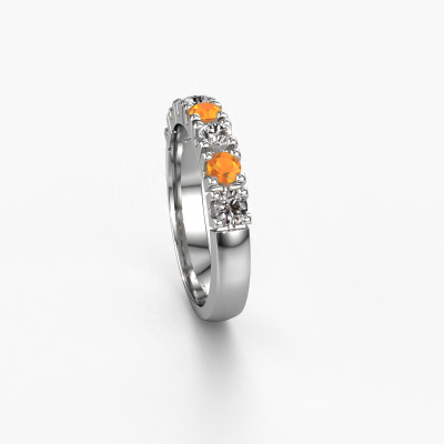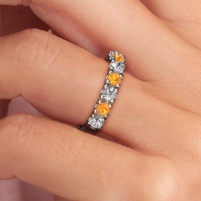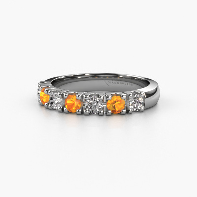 Dieser 7 Stone Ring wird Rianne 7 genannt. Diese Art von Ring wird als Memoire ring bezeichnet, da seine Edelsteine in einer durchgehenden Linie angeordnet sind. Dadurch kann er einfach mit anderen Ringen kombiniert werden. Das Band dieses 14 Karat Weißgold Ring ist in einer Kombination aus Citrin und Lab-grown Diamant besetzt. Sie können ganz einfach online die Kombination auswählen, die Sie bevorzugen. Wie Sie sehen, wird bei diesem Weißgold Memoire Ring mehre Citrin gesetzt. Der Memoire ring steht für Zusammenwirken. Und genau das tun diese Edelsteine, zusammenwirken. Zusammen geben sie dem Band eines traditionell Ring einen schönen Effekt! So ein bedeutungsvoller Ring, finden Sie nicht auch? Alle von uns ausgesuchten Citrin werden von unserem erfahrenen Goldschiede in Handarbeit eingefasst. Das ist eine präzise Aufgabe, die nur durch die Kombination von purer Handwerkskunst und dem Einsatz neuester Techniken erfolgreich durchgeführt werden kann, um eine optimale Wirkung zu erzielen. Um eine perfekte Lichtreflexion zu erzeugen, müssen alle Edelsteine auf die gleiche Weise perfekt ausgerichtet sein. Während der Fertigung wird der Goldschmied Meister daher ständig die Lichtreflexion überwachen, um zu gewährleisten, dass die Citrin perfekt ausgerichtet sind. Das erfordert eine geschickte Hand und viel Geduld, aber dann wird das Endprodukt zu einem echten Kunstwerk. Und genau das ist unsere Mission!Da wir unsere eigenen Ringe entwerfen und liefern, können wir Ihnen einen Ring zu einem Preis anbieten, den Sie nirgendwo anders finden. Ein Ring wird auf Bestellung angefertigt, wodurch kein überschüssiges Material anfällt. So können wir Ihnen ein gutes Angebot zum besten Preis machen. Wir verstehen, dass es sich riskant anfühlt, Ihren Ring online zu kaufen. Jedoch helfen wir Ihnen gerne beim Designprozess unter Berücksichtigung Ihres Budgets.