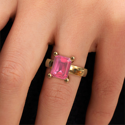 Suchen Sie einen Edelsteine Ring mit einem auffälligen,einzelnen Edelstein? Wie gefällt Ihnen dieser Clelia EME Ring? Dieser Gold Clelia EME Ring ist mit einem wunderschönen 10x8 mm smaragd schliff Pink Saphir besetzt. Der Pink Saphir wird von unseren Pink Saphir-Lieferanten sorgfältig ausgewählt. Anschließend werden diese Edelsteine nach alter Tradition von unserem Goldschiede gesetzt. Der Ring wird dann zur Perfektion poliert und zu einem einzigartigen Ring mit einem atemberaubenden Pink Saphir. Speziell für Sie angefertigt.