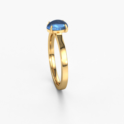 In diesem Foto ist der Gold Mallie 1 Ring mit einem 7x5 mm oval cabochon Blau Topas besetzt. Cabochon bedeutet, dass ein Blau Topas zuerst geformt, nicht facettiert wird. Nämlich in eine bestimmte Form wie einen Tropfen, ein Herz oder ein oval cabochon. Anschließend wird er poliert, bis der Edelstein eine Runde Oberfläche hat. Ein Cabochon-Edelstein ist ein atemberaubender, nobler Blickfang, der perfekt zu einem zeitgenössischen wie auch zu einem Vintage-Stil passt. Unsere erfahrenen Goldschmiede formen den geschmacksvolle Ring bis zur Perfektion und machen ihn einzigartig. Der Cabochon Blau Topas ist so gefasst, dass seine einzigartigen Qualitäten verstärkt werden. Sobald Sie Ihren Mallie 1 Ring mit unserem Online-Tool fertiggestellt haben, beginnen unsere Goldschmiede mit der kreativen Anfertigung Ihres Ringes. Dieser wird mit Leidenschaft und Sorgfalt nach alter Handwerkskunst gefertigt. Darüber hinaus sind unsere Edelsteine ehrlich gewonnen. Wenn Sie spezielle Änderungen an Ihrem Mallie 1 Ring vornehmen möchten, die in unserem Online-Tool nicht verfügbar sind, wenden Sie sich bitte an unsere Experten.Nach Erhalt Ihrer Bestellung beginnen unsere Goldschmiede mit Leidenschaft den kreativen Prozess und fertigen Ihren Ring in unserem eigenen Studio. Da wir keine großen Lager haben, werden diese Kosten nicht an Sie weitergegeben. Unsere Preisgestaltung ist der Beweis dafür! Wir bieten Schmuck zum niedrigsten Preis, garantiert.Um es einfacher zu machen, bieten wir eine kostenlose 30-tägige Rücksendung.