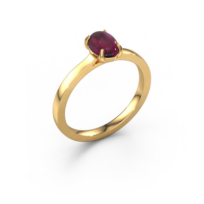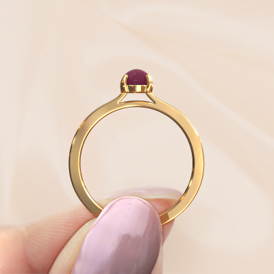 In diesem Foto ist der Gold Mallie 1 Ring mit einem 7x5 mm oval cabochon Rhodolit besetzt. Cabochon bedeutet, dass ein Rhodolit zuerst geformt, nicht facettiert wird. Nämlich in eine bestimmte Form wie einen Tropfen, ein Herz oder ein oval cabochon. Anschließend wird er poliert, bis der Edelstein eine Runde Oberfläche hat. Ein Cabochon-Edelstein ist ein atemberaubender, nobler Blickfang, der perfekt zu einem zeitgenössischen wie auch zu einem Vintage-Stil passt. Unsere erfahrenen Goldschmiede formen den geschmacksvolle Ring bis zur Perfektion und machen ihn einzigartig. Der Cabochon Rhodolit ist so gefasst, dass seine einzigartigen Qualitäten verstärkt werden. Sobald Sie Ihren Mallie 1 Ring mit unserem Online-Tool fertiggestellt haben, beginnen unsere Goldschmiede mit der kreativen Anfertigung Ihres Ringes. Dieser wird mit Leidenschaft und Sorgfalt nach alter Handwerkskunst gefertigt. Darüber hinaus sind unsere Edelsteine ehrlich gewonnen. Wenn Sie spezielle Änderungen an Ihrem Mallie 1 Ring vornehmen möchten, die in unserem Online-Tool nicht verfügbar sind, wenden Sie sich bitte an unsere Experten.Nach Erhalt Ihrer Bestellung beginnen unsere Goldschmiede mit Leidenschaft den kreativen Prozess und fertigen Ihren Ring in unserem eigenen Studio. Da wir keine großen Lager haben, werden diese Kosten nicht an Sie weitergegeben. Unsere Preisgestaltung ist der Beweis dafür! Wir bieten Schmuck zum niedrigsten Preis, garantiert.Um es einfacher zu machen, bieten wir eine kostenlose 30-tägige Rücksendung.