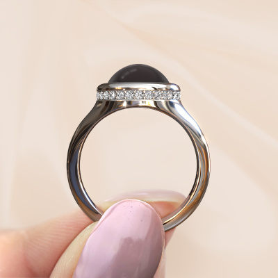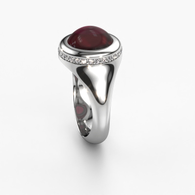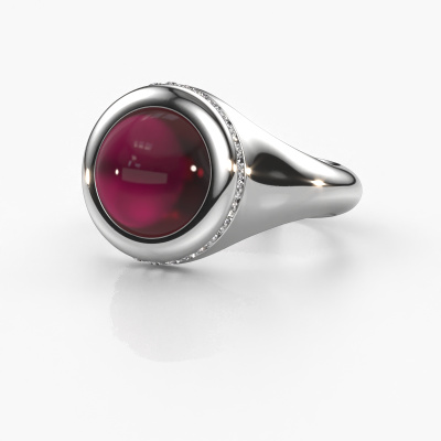 In diesem Foto ist der Weißgold Lesli RND Ring mit einem 10 mm rund cabochon Granat besetzt. Cabochon bedeutet, dass ein Granat zuerst geformt, nicht facettiert wird. Nämlich in eine bestimmte Form wie einen Tropfen, ein Herz oder ein rund cabochon. Anschließend wird er poliert, bis der Edelstein eine Runde Oberfläche hat. Ein Cabochon-Edelstein ist ein atemberaubender, nobler Blickfang, der perfekt zu einem zeitgenössischen wie auch zu einem Vintage-Stil passt. Unsere erfahrenen Goldschmiede formen den schöne Ring bis zur Perfektion und machen ihn einzigartig. Der Cabochon Granat ist so gefasst, dass seine einzigartigen Qualitäten verstärkt werden. Sobald Sie Ihren Lesli RND Ring mit unserem Online-Tool fertiggestellt haben, beginnen unsere Goldschmiede mit der kreativen Anfertigung Ihres Ringes. Dieser wird mit Leidenschaft und Sorgfalt nach alter Handwerkskunst gefertigt. Darüber arbeiten wir mit ehrlichen Edelsteinen. Einfach online mit unserem Online-Tool anpassen, wenn Sie Änderungen wünschen. Wenn Sie spezielle Änderungen an Ihrem Lesli RND Weißgold Ring vornehmen möchten, die in unserem Online-Tool nicht verfügbar sind, wenden Sie sich bitte an unsere Experten.Nach Erhalt Ihrer Bestellung beginnen unsere Goldschmiede mit Leidenschaft den kreativen Prozess und fertigen Ihren Ring in unserem eigenen Studio. Da wir keine großen Lager haben, werden diese Kosten nicht an Sie weitergegeben. Unsere Preisgestaltung ist der Beweis dafür! Wir bieten Schmuck zum niedrigsten Preis, garantiert.Um es einfacher zu machen, bieten wir eine kostenlose 30-tägige Rücksendung.