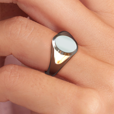 Dieser Weißgold Siegelring ist ein wahres Kunstwerk! Das ist unser schicke Evon 1 Siegelring und ist mit 10x8 mm oval form grüner Lagenstein besetzt. In unserem Studio verwenden wir eine Kombination aus den neuesten Techniken und traditioneller Handwerkskunst, sodass wir einen perfekten Siegelring kreieren können. Unsere erfahrenen Goldschmiede sind fasziniert von Siegelringen. Der Siegelring kann mit Initialen oder einem Familienwappen graviert werden. Siegelringe mit Familienwappen können von Generation zu Generation weitergegeben werden und das ist normalerweise auch der Fall. Obendrein ist ein Siegelring ein schönes, edles Schmuckstück, das wieder im Trend liegt. Mehr als ein Grund, die Tradition zu beginnen oder zu erweitern. Bitte sehen Sie sich unsere Online-Datenbank für weitere Optionen zu Gravuren an. Die verschiedenen Abteilungen innerhalb der Online-Datenbank finden Sie am unteren Rand dieser Seite. Unsere Goldschmiede kreieren Ihren individuellen Siegelring leidenschaftlich, mit größter Sorgfalt und nach Ihren Wünschen. Das Weißgold Siegelring, wie hier abgebildet, kann mit unserem Online-Tool individuell angepasst werden. Bitte fragen Sie unsere Schmuckdesigner um Hilfe, wenn Sie Änderungen wünsche, die in unserem Online-Tool nicht verfügbar sind. Gerne beantworten wir Ihnen alle offenen Fragen.Nach Erhalt Ihrer Bestellung beginnen unsere Goldschmiede mit Leidenschaft den kreativen Prozess und fertigen Ihren Ring in unserem eigenen Studio. Da wir keine großen Lager haben, werden diese Kosten nicht an Sie weitergegeben. Unsere Preisgestaltung ist der Beweis dafür! Wir bieten Schmuck zum niedrigsten Preis, garantiert.Um es einfacher zu machen, bieten wir eine kostenlose 30-tägige Rücksendung.