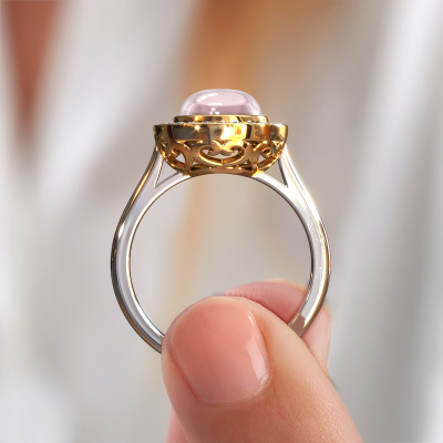 Suchen Sie einen reiche Ring mit einem auffälligen,einzelnen Edelstein? Wie gefällt Ihnen dieser Alisa Ring? Dieser Weißgold Alisa Ring ist mit einem wunderschönen 8 mm rund cabochon Morganit Champagner besetzt. Der Morganit Champagner wird von unseren Morganit Champagner-Lieferanten sorgfältig ausgewählt. Anschließend werden diese Edelsteine nach alter Tradition von unserem Goldschiede gesetzt. Der Ring wird dann zur Perfektion poliert und zu einem einzigartigen Ring mit einem atemberaubenden Morganit Champagner. Speziell für Sie angefertigt. Ein individueller, Fantasie reiche Ring ist das perfekte Geschenk! Unser Team von leidenschaftlichen Goldschmieden fügt täglich neue exquisite Designs hinzu. Und jedes Design kann angepasst werden. Passen Sie zum Beispiel einfach die Edelmetalle und die Farbe der verwendeten Edelsteine an. Das macht Ihr Design des Fantasie Alisa Ring wirklich einzigartig!Haben Sie ein bestimmtes Budget? Sie können uns gerne kontaktieren, damit wir Ihre Optionen besprechen können. Wir bieten unsere Ringe zum garantiert besten Preis, denn wir fertigen sie auf Bestellung. Solche Preise finden Sie nirgendwo anders!Um es einfacher zu machen, bieten wir eine kostenlose 30-tägige Rücksendung.