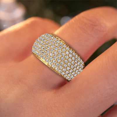 Dieser Ring mit Pavé-Fassung wird Kati genannt. Dieser Ring aus 14 Karat Gold ist komplett rund mit Diamanten 1.20 crt besetzt. Das Band dieses Gold Ring ist mit Reihen von Diamanten besetzt, die weder Anfang noch Ende zu haben scheinen. Unser Goldschiede wählt die Edelsteine sorgfältig aus und setzt sie mit höchster Präzision. Für maximalen Glanz müssen die Diamanten perfekt ausgerichtet sein. Beim kunstvollen Fertigen und Polieren des Schmucks wird der Lichteinfall ständig überwacht, bis der Goldschmiedemeister mit dem Ergebnis zufrieden ist. Von Ihnen entworfen, speziell für Sie gefertigt!Sobald Sie Ihren Kati Ring mit unserem Online-Tool fertiggestellt haben, beginnen unsere Goldschmiede mit der kreativen Anfertigung Ihres Ringes. Dieser wird mit Leidenschaft und Sorgfalt nach alter Handwerkskunst gefertigt. Darüber arbeiten wir mit ehrlichen Edelsteinen. Einfach online mit unserem Online-Tool anpassen, wenn Sie Änderungen wünschen. Wenn Sie spezielle Änderungen an Ihrem Kati Gold Ring vornehmen möchten, die in unserem Online-Tool nicht verfügbar sind, wenden Sie sich bitte an unsere Experten.Nach Erhalt Ihrer Bestellung beginnen unsere Goldschmiede mit Leidenschaft den kreativen Prozess und fertigen Ihren Ring in unserem eigenen Studio. Da wir keine großen Lager haben, werden diese Kosten nicht an Sie weitergegeben. Unsere Preisgestaltung ist der Beweis dafür! Wir bieten Schmuck zum niedrigsten Preis, garantiert.Um es einfacher zu machen, bieten wir eine kostenlose 30-tägige Rücksendung.