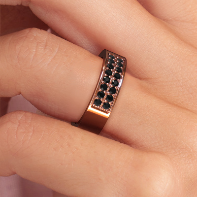 Dieser Ring namens Catharina 5 besteht aus 14 Karat Roségold und ist mit Schwarz Diamant besetzt. Sind Sie auf der Suche nach einem einzigartigen Roségold Vorsteckring mit moderner Note? Dann könnte dieser Ring zu Ihnen passen. Einfach nach Ihren Wünschen anpassen. Er passt zur zeitgenössischen, modernen Frau. Dieser Pavé Fassung Vorsteckring ist mit wunderschönen Schwarze Diamanten besetzt. Er wurde sorgfältig ausgewählt. Weil Ihr Vorsteckring mit nichts als dem atemberaubendsten Edelstein gekrönt werden soll. Unser erfahrener Goldschiede kreiert Ihren Ring in unserem eigenen Studio, wo der Schwarz Diamant mit großer Sorgfalt gesetzt wird. Der Ring wird dann perfekt poliert, um einen atemberaubenden Ring zu erhalten. Nach Erhalt Ihrer Bestellung beginnen unsere Goldschmiede mit Leidenschaft den kreativen Prozess und fertigen Ihren Ring in unserem eigenen Studio. Da wir keine großen Lager haben, werden diese Kosten nicht an Sie weitergegeben. Unsere Preisgestaltung ist der Beweis dafür! Wir bieten Schmuck zum niedrigsten Preis, garantiert.Unsere Online-Kollektion wird täglich um neue Schmuckdesigns ergänzt. Unser Team von leidenschaftlichen Designern ist bemüht, außergewöhnliche und vielfältige Designs zu kreieren. Haben Sie einen Ring gesehen, der Ihnen gefällt? Setzen Sie sich mit uns in Verbindung. Basierend auf einem guten Preis/Leistungsverhältnis machen wir Ihnen ein Angebot, das Sie nicht ablehnen können!Um es einfacher zu machen, bieten wir eine kostenlose 30-tägige Rücksendung.
