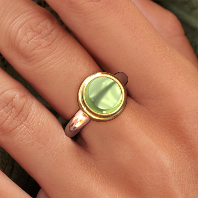In diesem Foto ist der Roségold Jenae Ring mit einem 10 mm rund cabochon Peridot besetzt. Cabochon bedeutet, dass ein Peridot zuerst geformt, nicht facettiert wird. Nämlich in eine bestimmte Form wie einen Tropfen, ein Herz oder ein rund cabochon. Anschließend wird er poliert, bis der Edelstein eine Runde Oberfläche hat. Ein Cabochon-Edelstein ist ein atemberaubender, nobler Blickfang, der perfekt zu einem zeitgenössischen wie auch zu einem Vintage-Stil passt. Unsere erfahrenen Goldschmiede formen den schöne Ring bis zur Perfektion und machen ihn einzigartig. Der Cabochon Peridot ist so gefasst, dass seine einzigartigen Qualitäten verstärkt werden. Ein individueller, trendige schöne Ring ist das perfekte Geschenk! Unser Team von leidenschaftlichen Goldschmieden fügt täglich neue exquisite Designs hinzu. Und jedes Design kann angepasst werden. Passen Sie zum Beispiel einfach die Edelmetalle und die Farbe der verwendeten Edelsteine an. Das macht Ihr Design des trendige Jenae Ring wirklich einzigartig!Durch die Kombination modernster Technik mit uralter Handwerkskunst können wir alle Ringe in unserem eigenen Studio anfertigen. Jedes Schmuckstück wird auf Anfrage gefertigt. Das ist vorteilhaft, weil wir Ihnen dadurch einen Preis anbieten können, den Sie nirgendwo anders finden.Um es einfacher zu machen, bieten wir eine kostenlose 30-tägige Rücksendung.